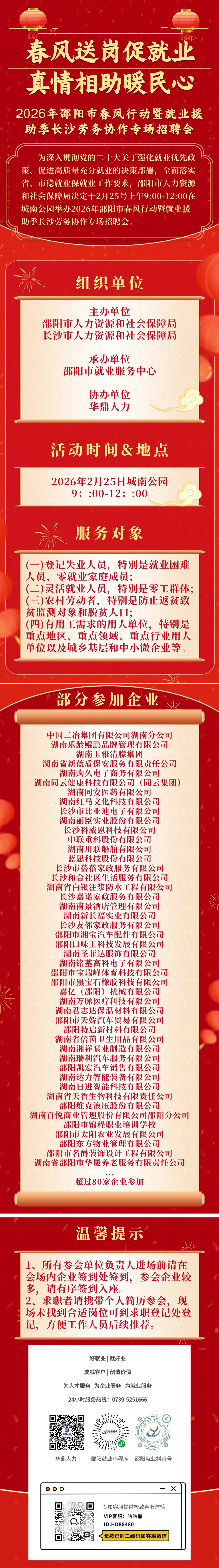 >2026年邵阳市春风行动暨就业援助季长沙劳务协作专场招聘会