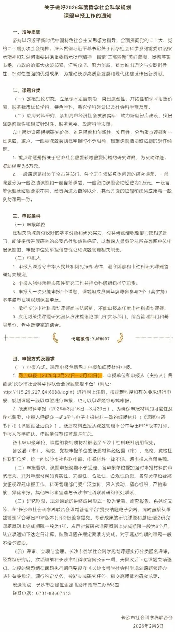 >湖南长沙社科联-2026年度哲学社会科学规划课题申报通知(3.13截止)