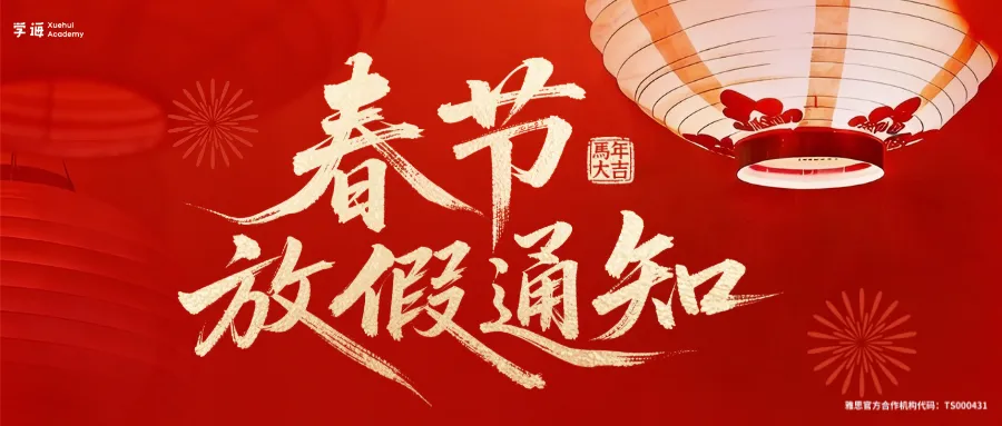 ·春节假期:2月15日(腊月二十八)-2月22日(正月初六),校区暂停开放,共8天;
