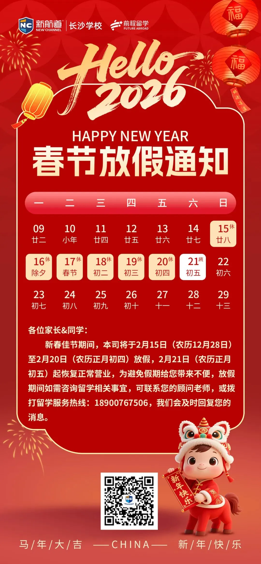 根据国家发布的2026年春节放假时间,结合实际情况,我司2026年春节放假安排如下: