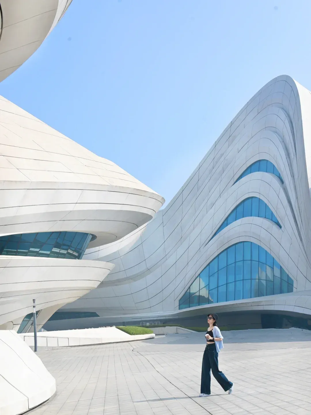 极简建筑:谢子龙影像馆、湘江新区城市馆适合穿纯色衣物,利用线条与光影拍出高级感剪影。