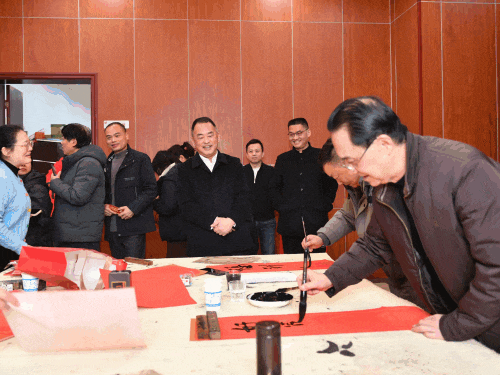 活动外场,弥漫着浓郁的墨香与醇厚的年味,写春联送福字是每年最具人气的保留活动。工会特意邀请报社优秀书法家亲临现场挥毫泼墨,为职工们写对联、送福字。洪孟春等领导也来到外场,与现场职工互动拜年,并饶有兴致地观看写春联,遒劲的笔力、饱含吉祥的墨汁,书写着职工对新年的美好愿景。
