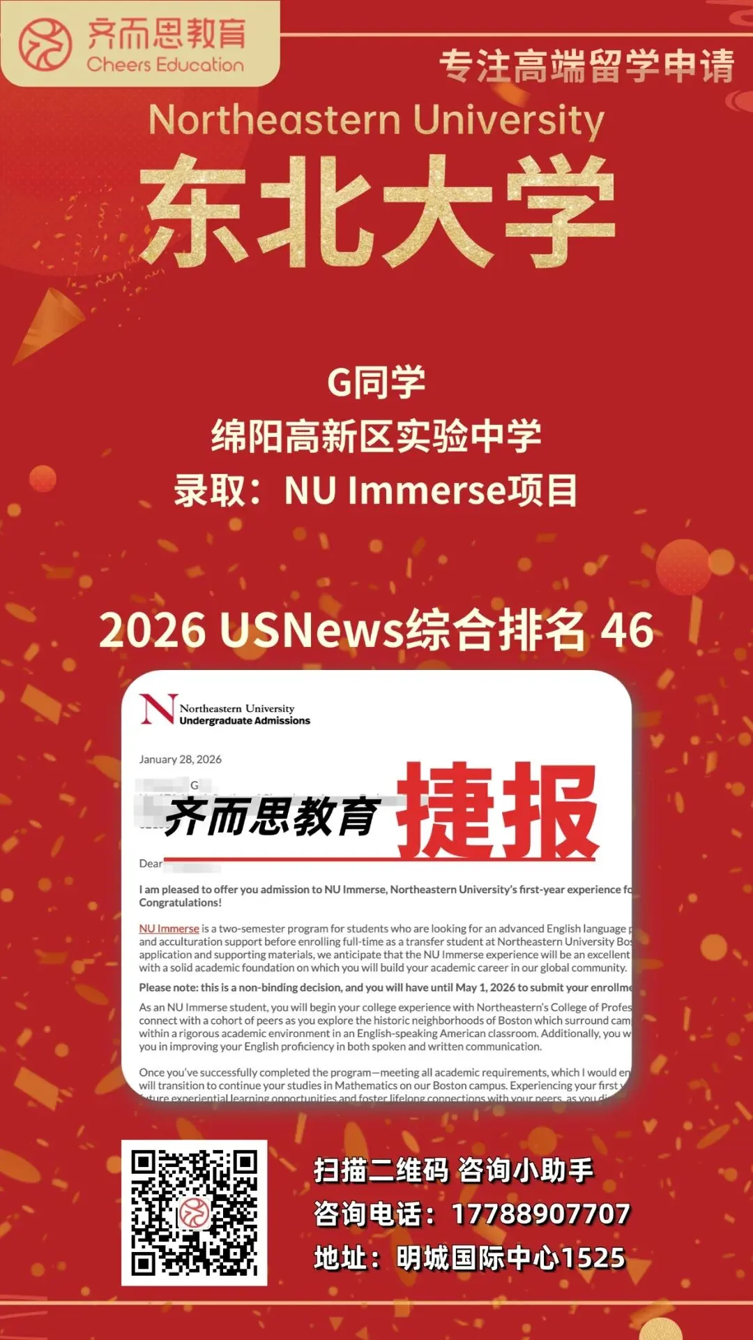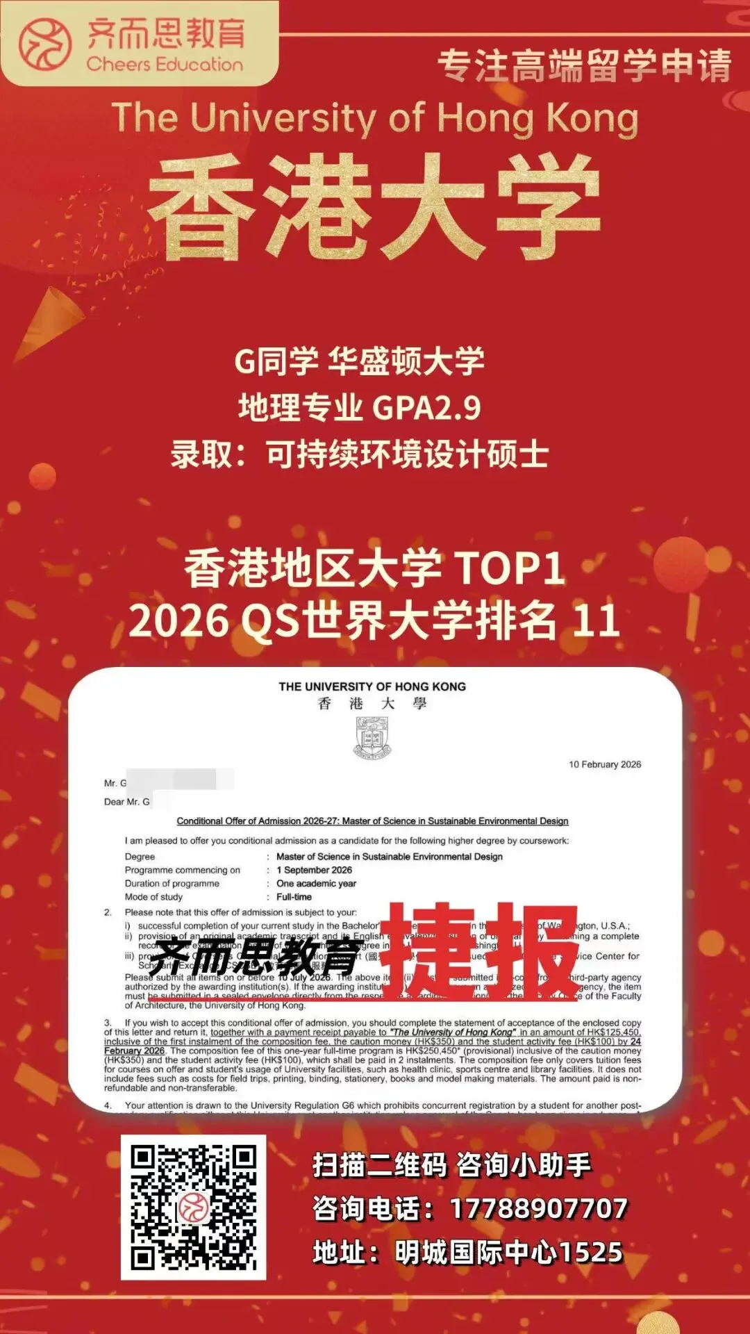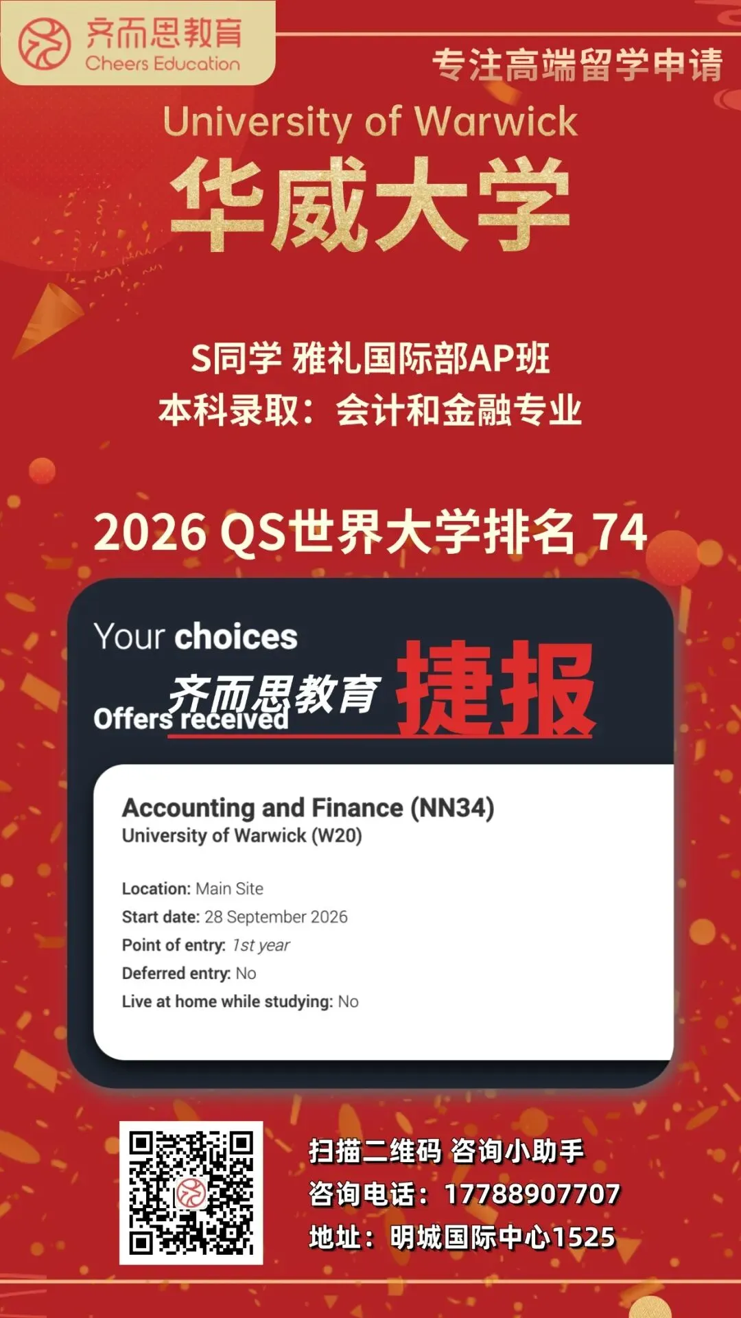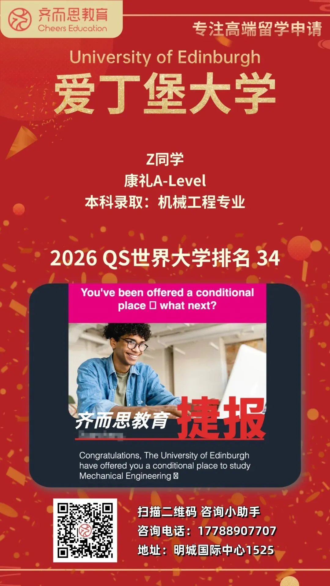 如果您有关于留学申请、背景提升、海外实习求职等任何疑问,欢迎扫码咨询Cheers~