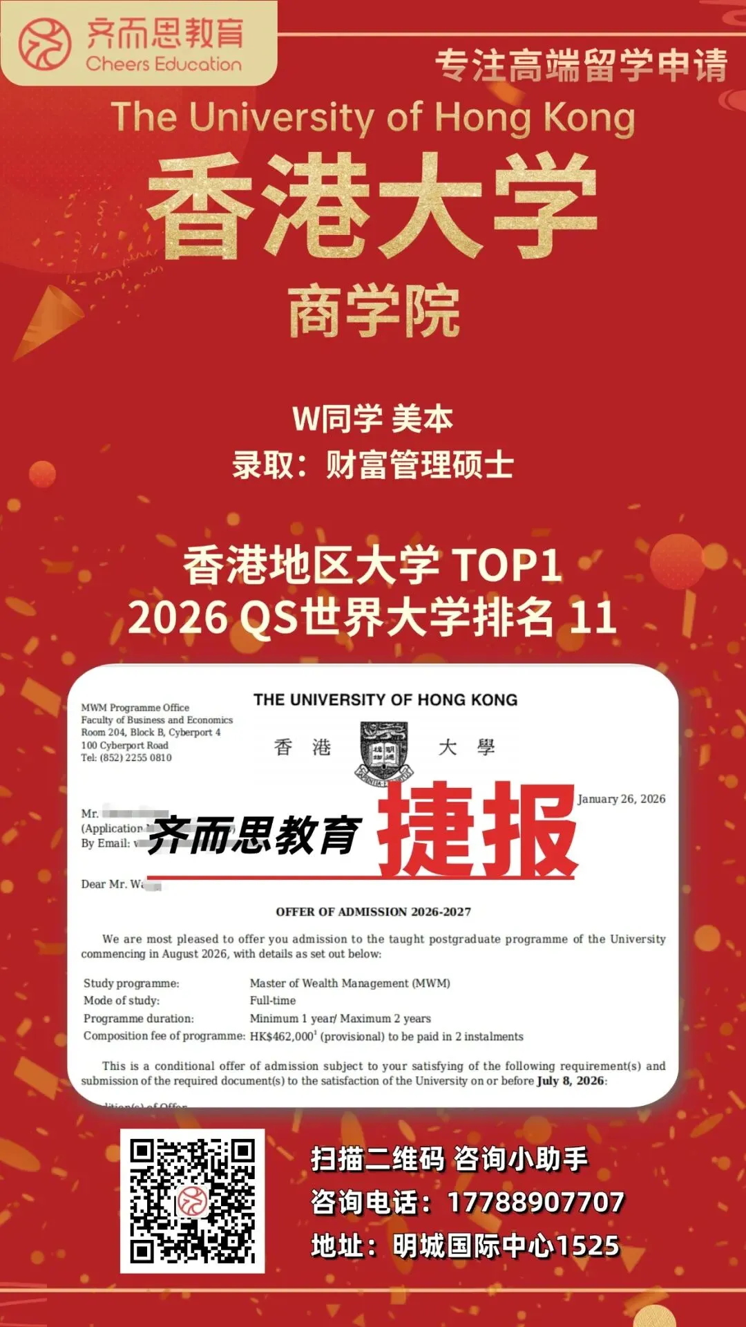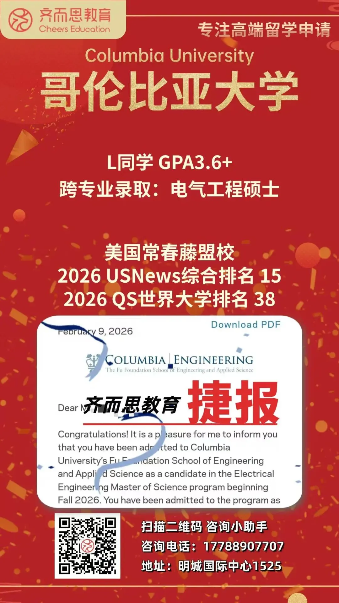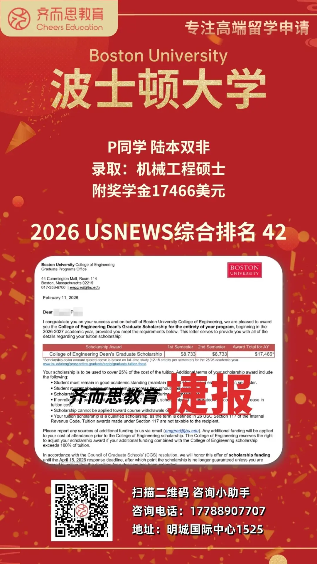 如果您有关于留学申请、背景提升、海外实习求职等任何疑问,欢迎扫码咨询Cheers~