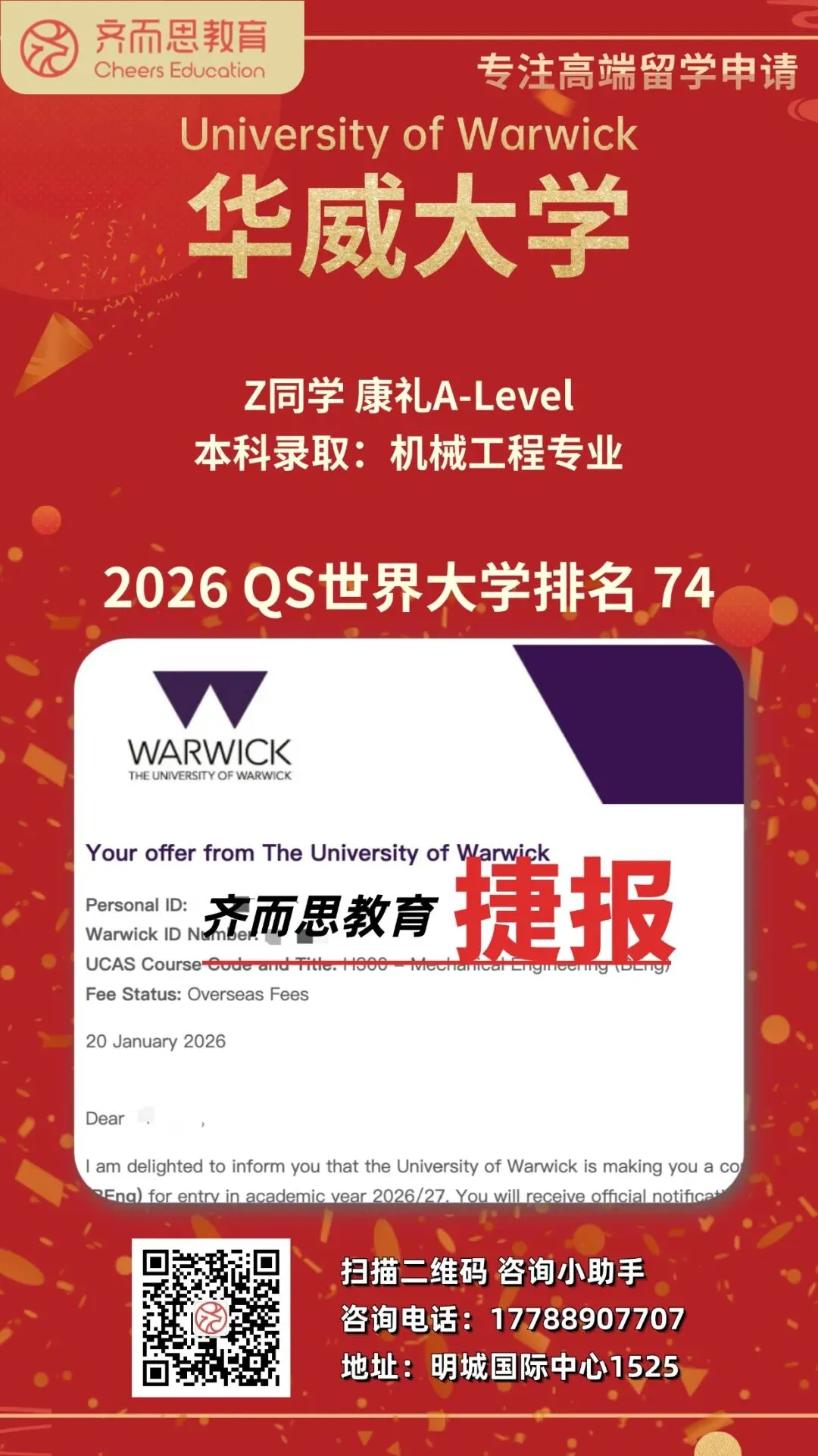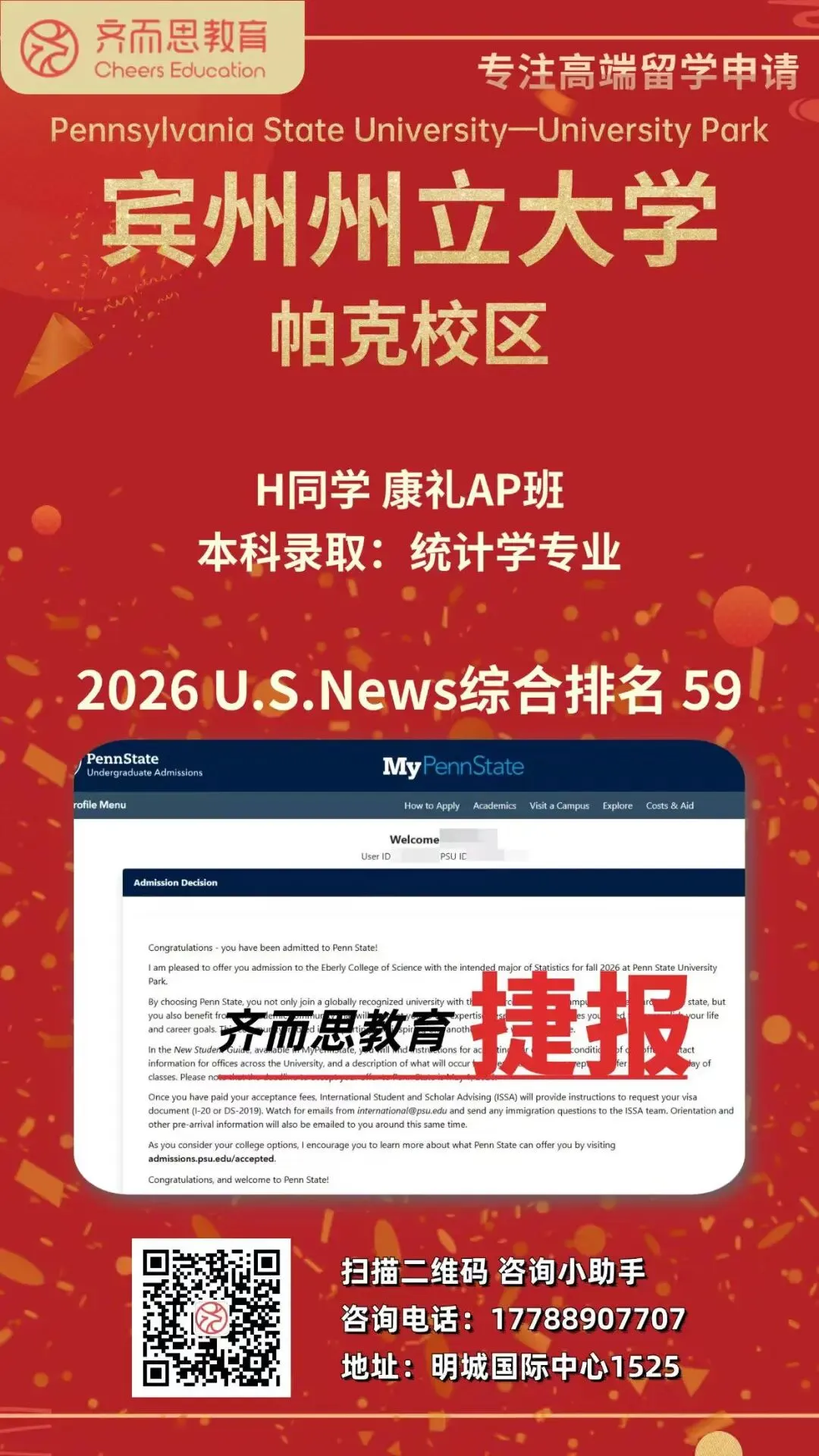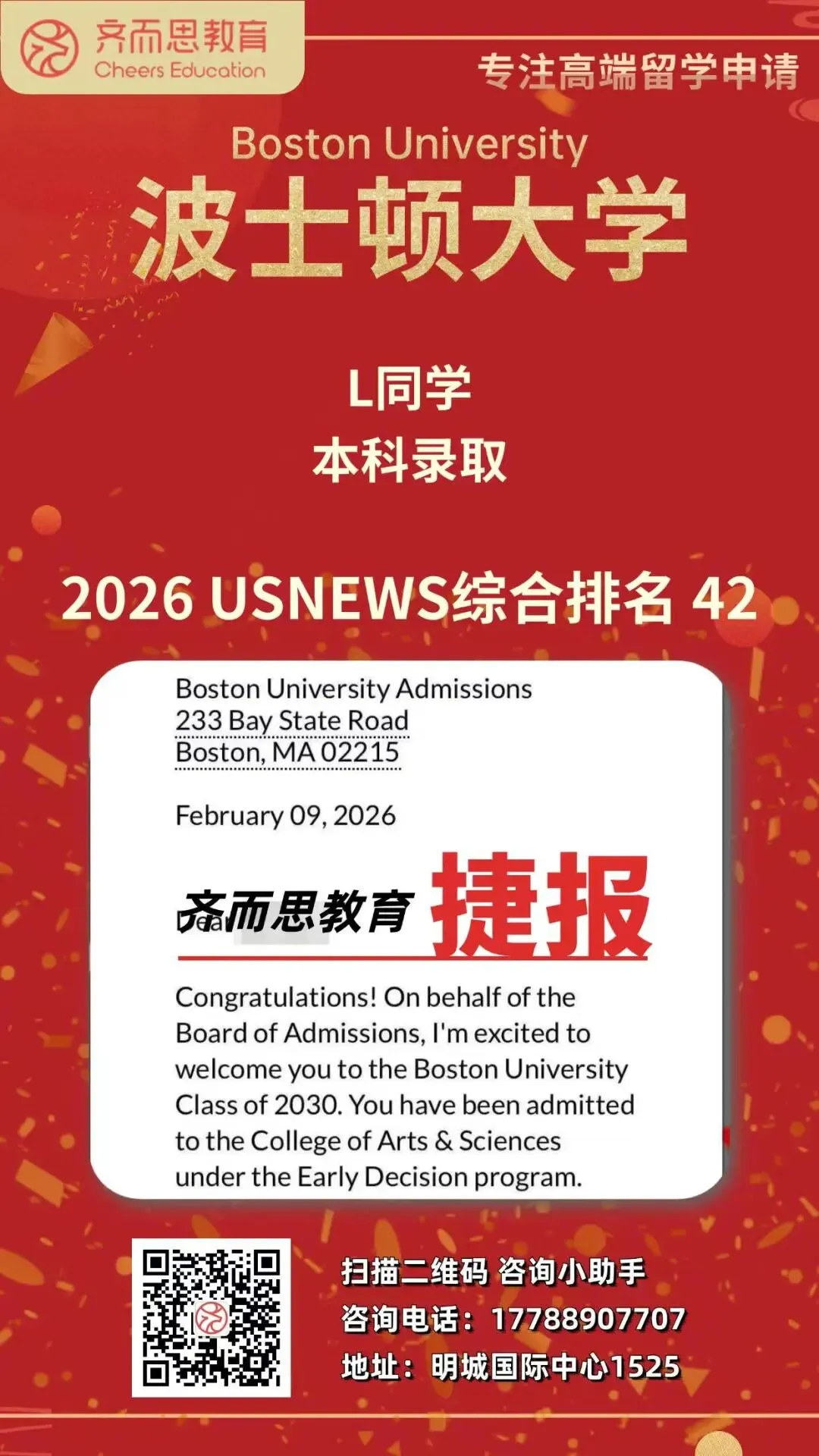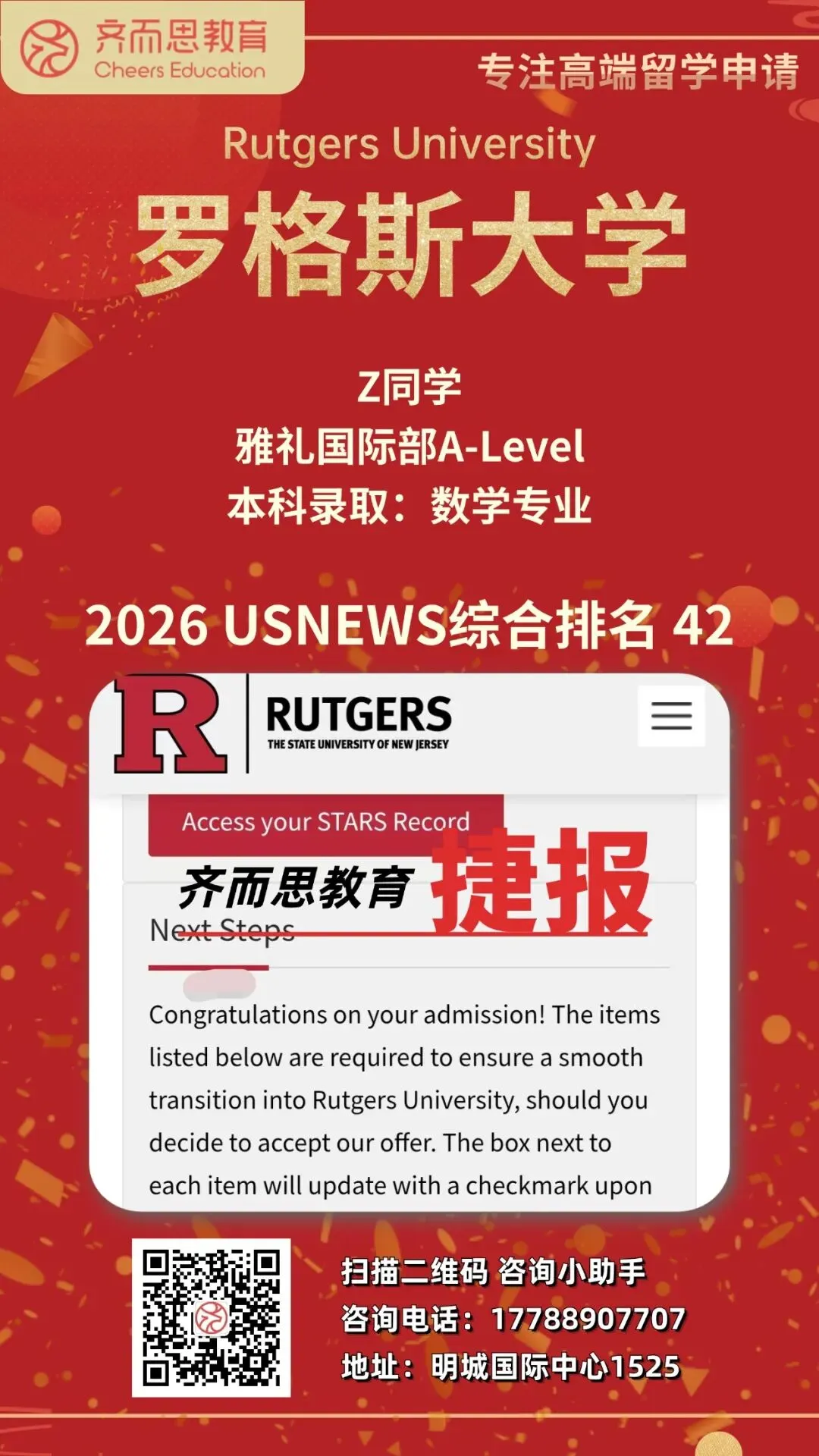 如果您有关于留学申请、背景提升、海外实习求职等任何疑问,欢迎扫码咨询Cheers~