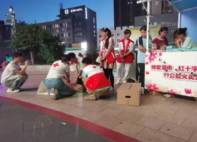 周末,我穿上长沙红十字会的红马甲,在人流最密集的街头摆起义卖摊。