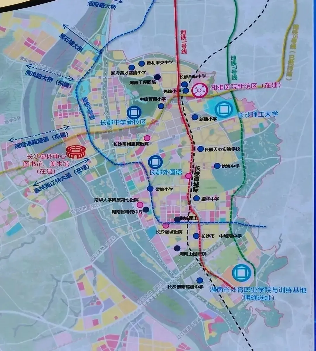 目前,在暮云段沿着芙蓉南路铺设的是1号线,沿着韶山南路铺设的是7号线,官方的回复是否意味着这两条线都有望南延呢?在之前官网曝光的南部片区交通规划中,我们可以清晰的看到未来暮云融城片区除长株潭城际外,还有1号线南延、7号线南延以及地铁9号线。期待规划能早日落地。
