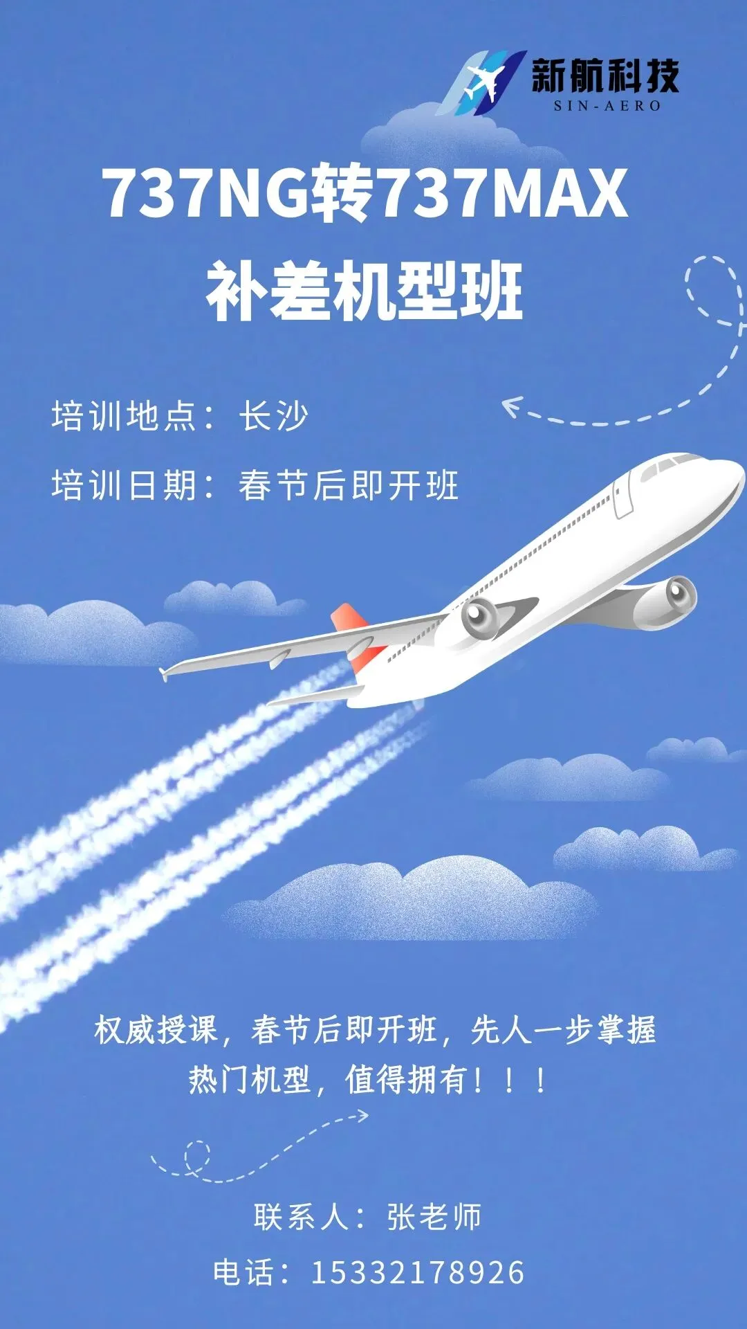 长沙〡新航科技开设民航机务维修波音737NG转737MAX补差机型培训班