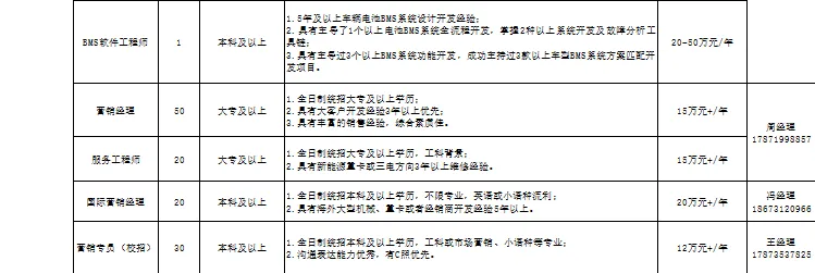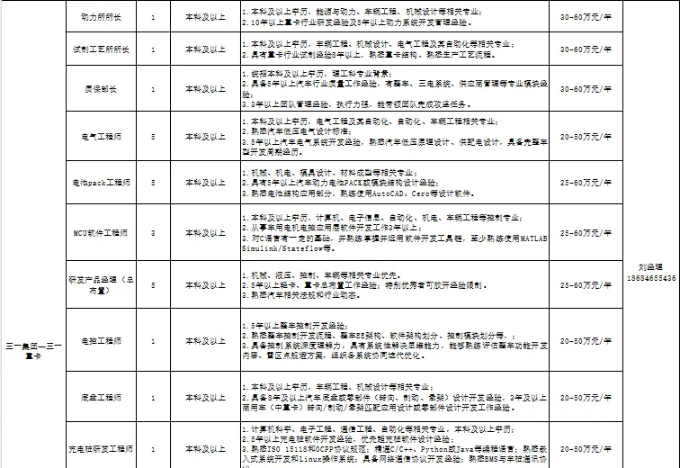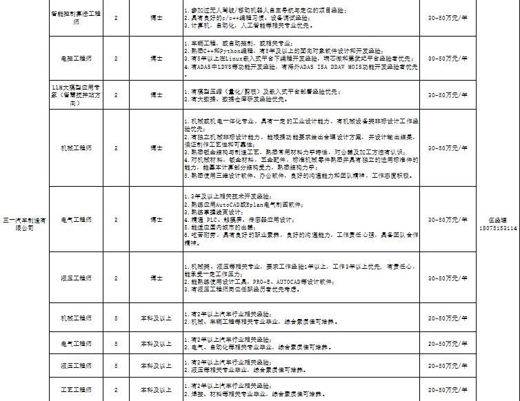 部分岗位如下