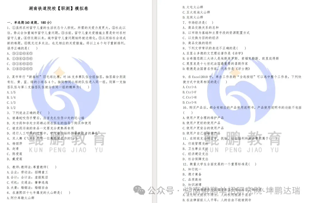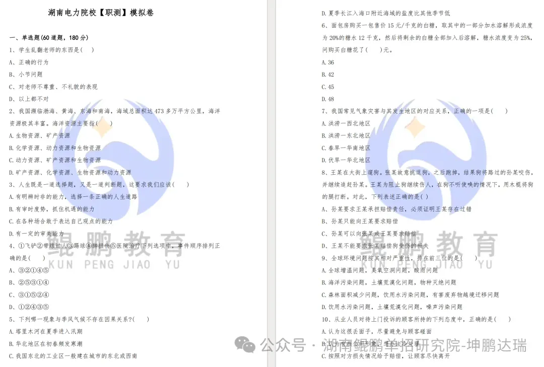(资料内容较多,以上仅展示部分,每一所公办专科院校的往年职业技能测试试卷都有!都可以免费领取电子版打印!)