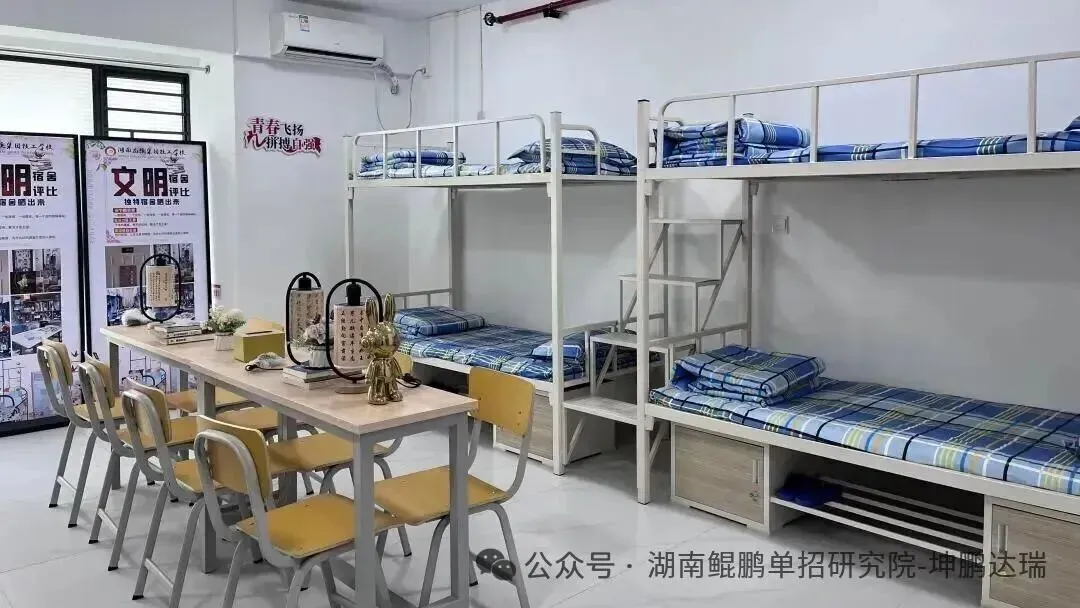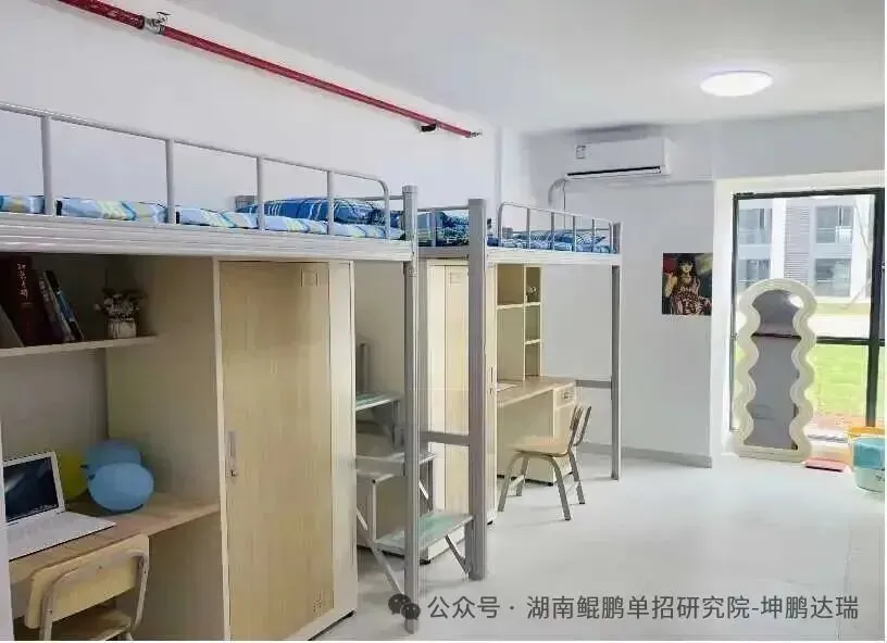 宿舍是学生温暖的港湾,学校内配设有四人间和八人间的宿舍,宿舍内有独立卫生间、空调、太阳能热水器、洗衣机、无线网络,为学生的生活提供温暖。宿舍配备有专职的宿舍管理员,负责宿舍的日常管理和维护,以及处理突发事件。
