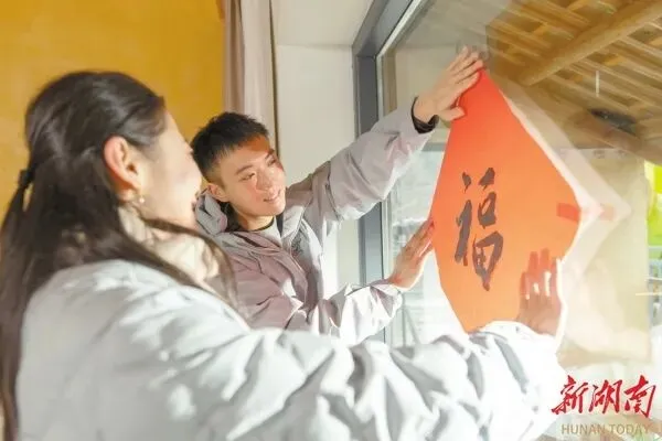 春节前夕,道官冲村民在贴“福”字。