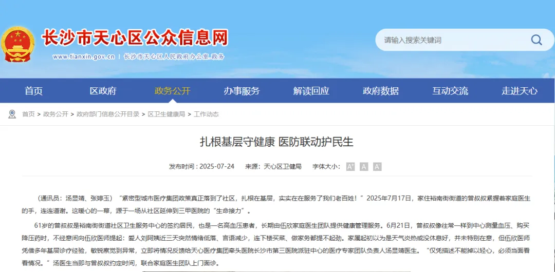 2025年6月,长沙市第三医院成功获批湖南省首批“构建矩阵式医联体,推进分级诊疗落地见效”试点单位,通过专家下沉社区、畅通绿色转诊通道、信息互联互通、赋能家庭医生等核心举措,成功构建起“基层首诊、双向转诊、急慢分治、上下联动”的分级诊疗体系。