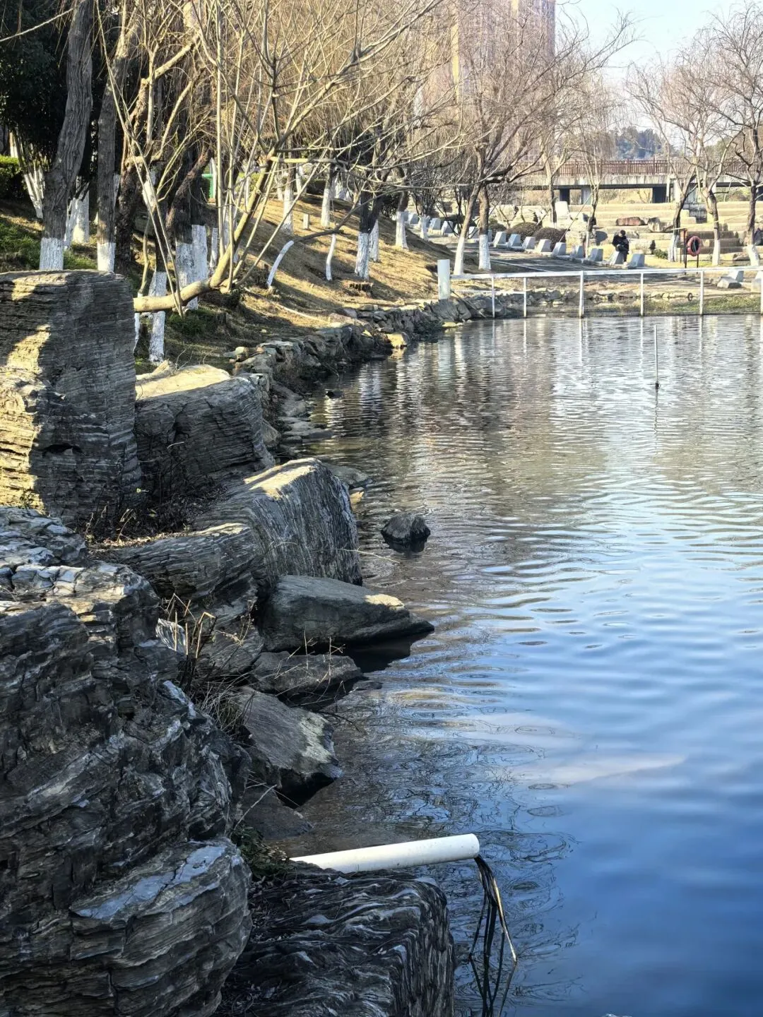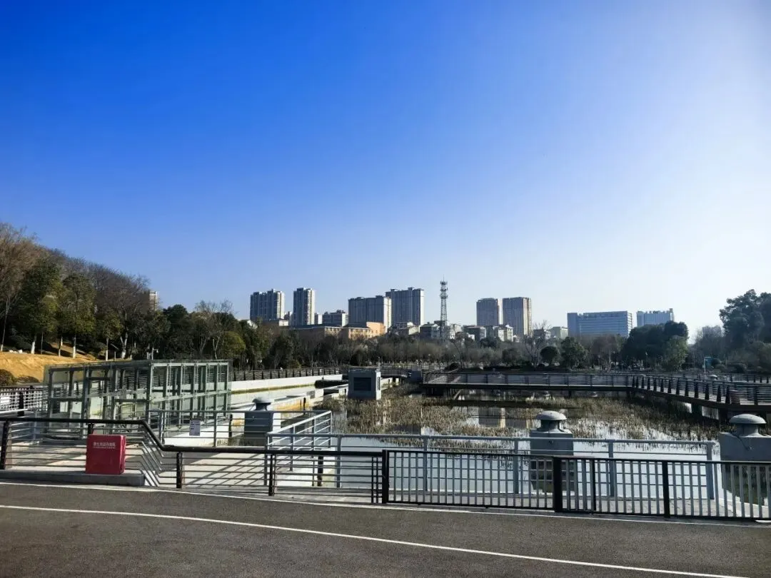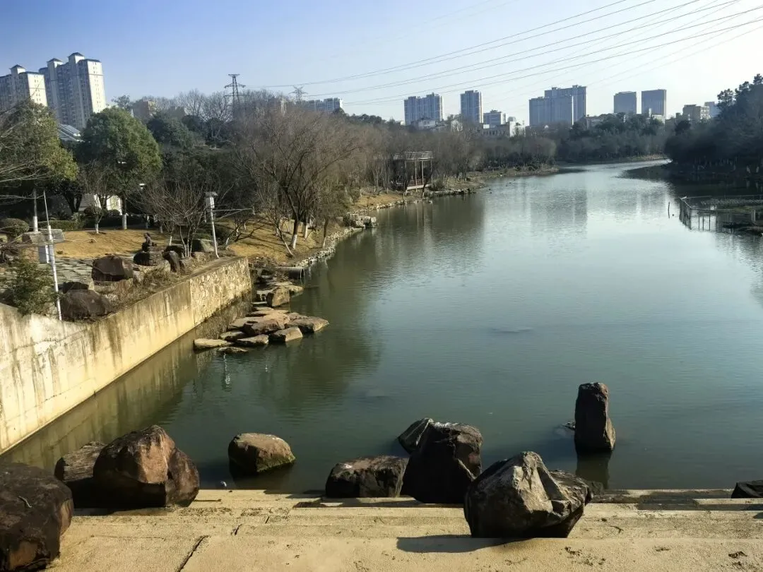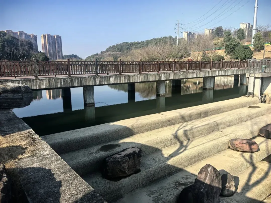 慢步在王家河风光带,行至王家河北向尽头(冷水铺)。王家河南起三眼桥,北至冷水铺,全长6.6公里。水面总面积150万平方米。