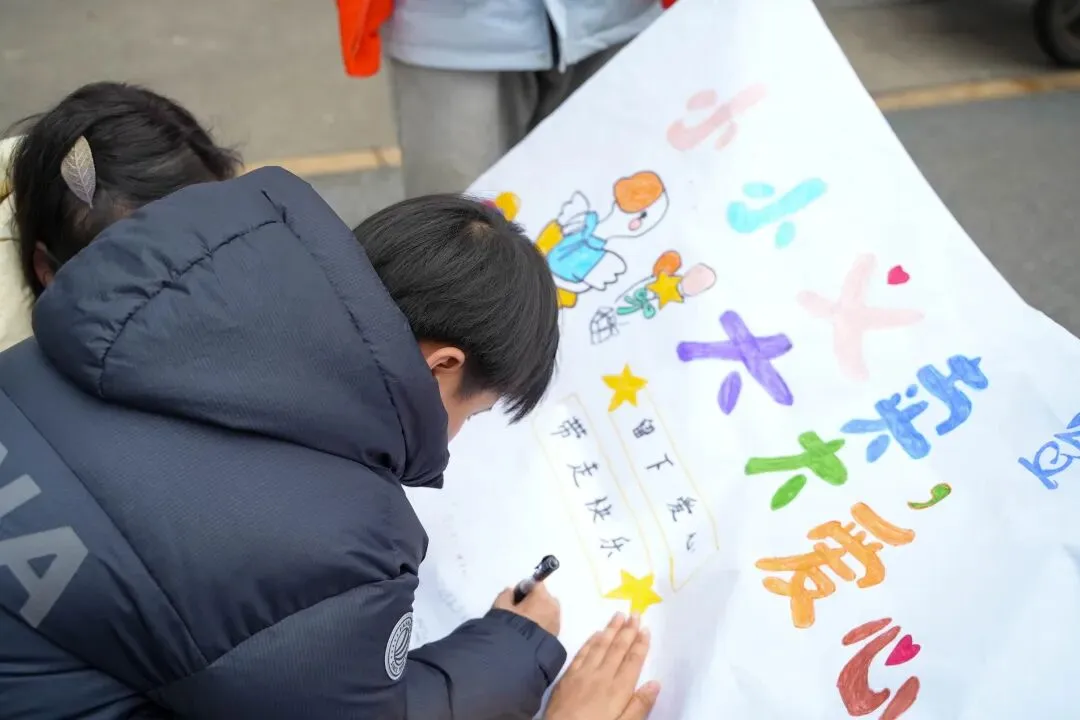 一位小朋友听完学员的介绍后,举起手中的两个橘子:“哥哥姐姐,你们辛苦了,给你们吃!”那一刻,小小的橘子甜透了大家的心;一位带着孩子捡垃圾做公益的家长,特意让孩子与学员们合影,鼓励道:“要向大哥哥大姐姐学习,用行动帮助别人”;留言板上,路人们纷纷提笔写下祝福:“愿每个孩子都被温柔以待”“世界因你们而美好”——短短几小时,便签贴满了整块板子……