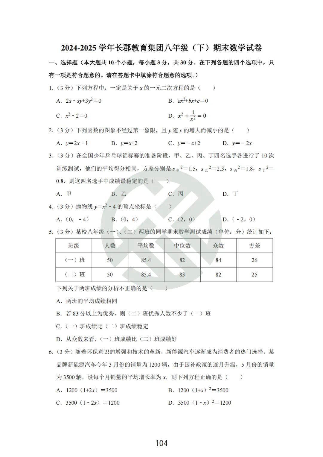 长郡集团-初二