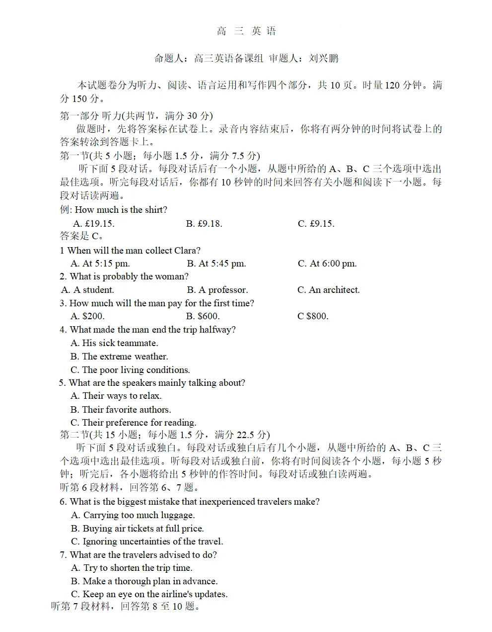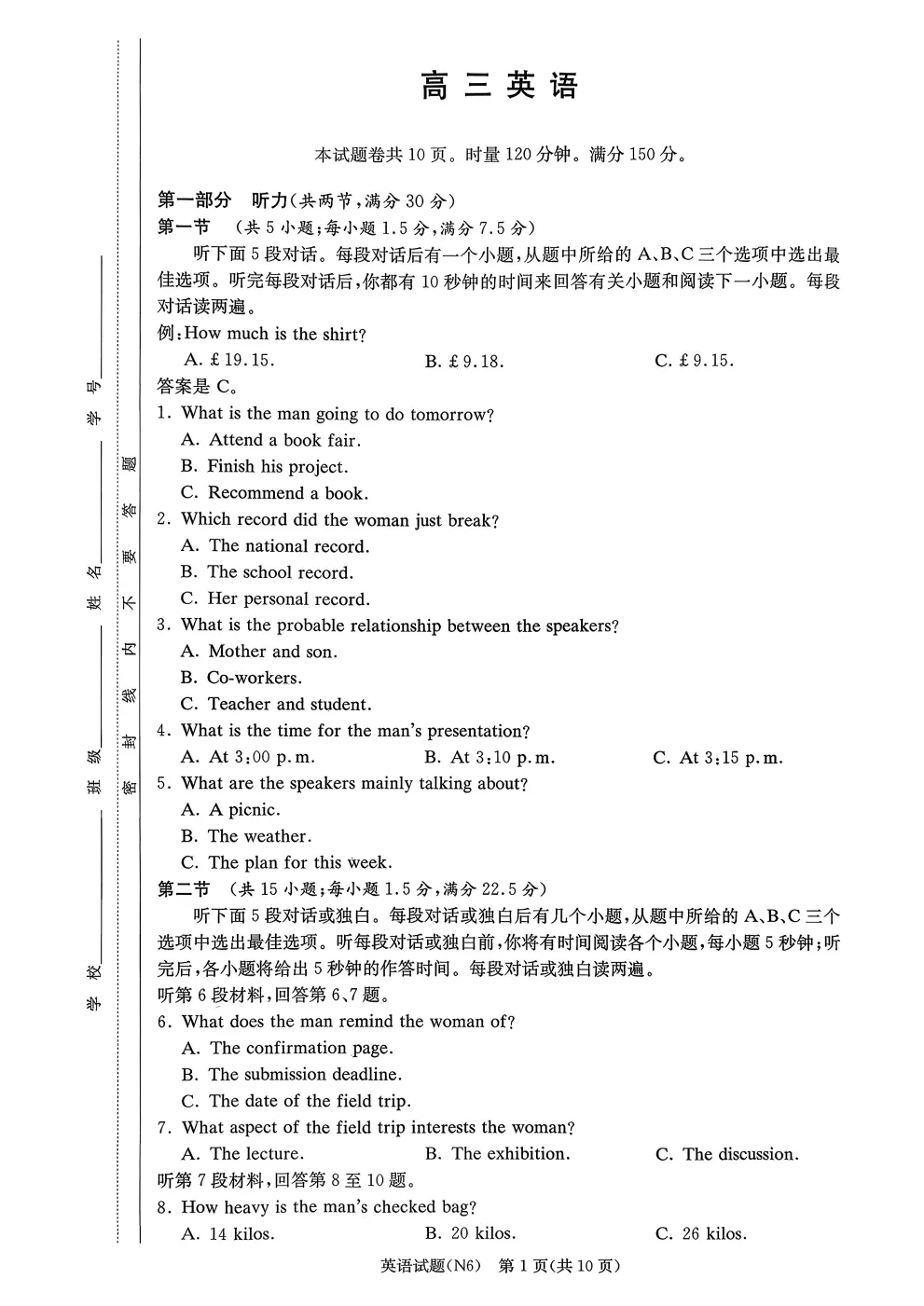 湖南长沙四大名校(长郡、雅礼、长沙一中、湖南师大附中)炎德・英才大联考 2026 届高三月考(六)英语试题及答案(含音频)
