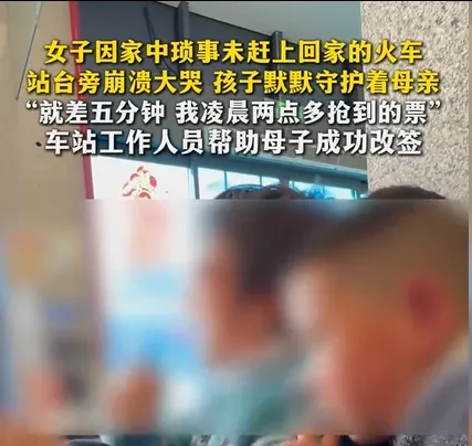 近日,湖南长沙火车站,一段视频看哭无数人。画面里,一位女子蹲在站台旁,双手捂脸、浑身发抖,反复哭喊:“就差五分钟,就差五分钟啊……”身旁的孩子默默拽着她的衣角,不吵不闹,模样格外让人心疼。