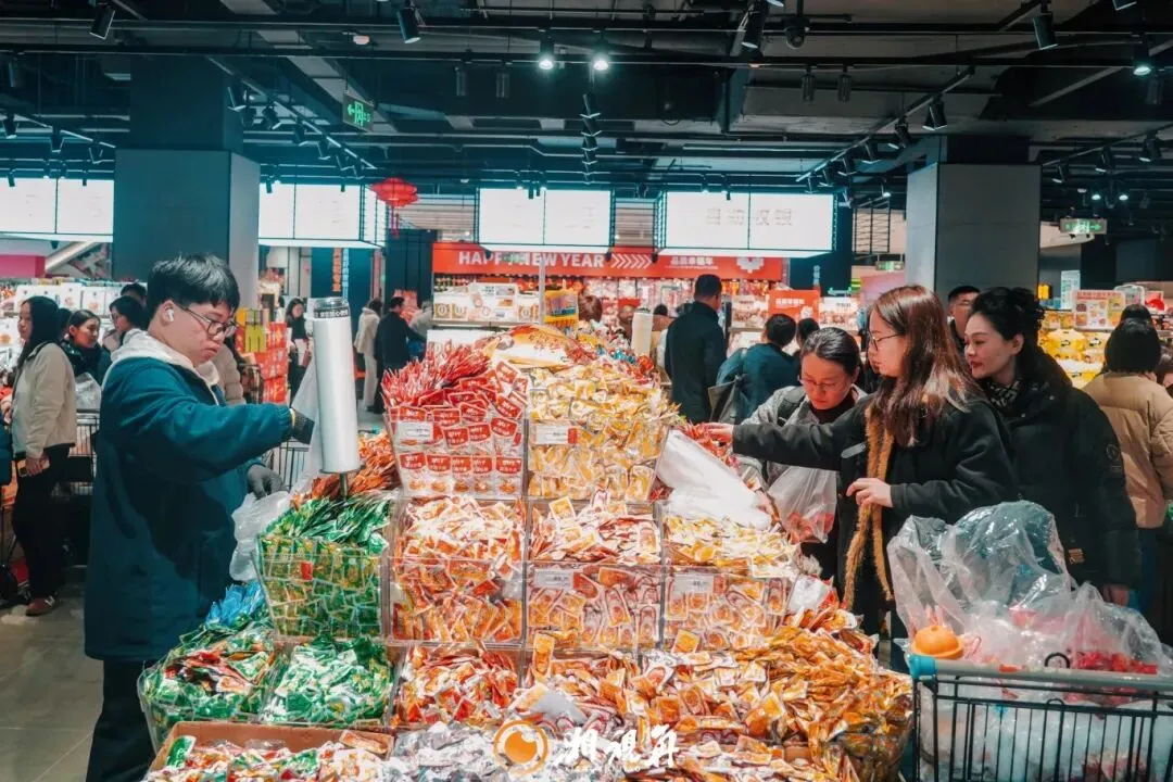 作为桐梓坡商圈的 “民生补给站”,步步高超市(步步高广场长沙店)早已被年味浸透。