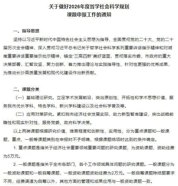 湖南长沙社科联-2026年度哲学社会科学规划课题申报通知(2026.3.13截止)
