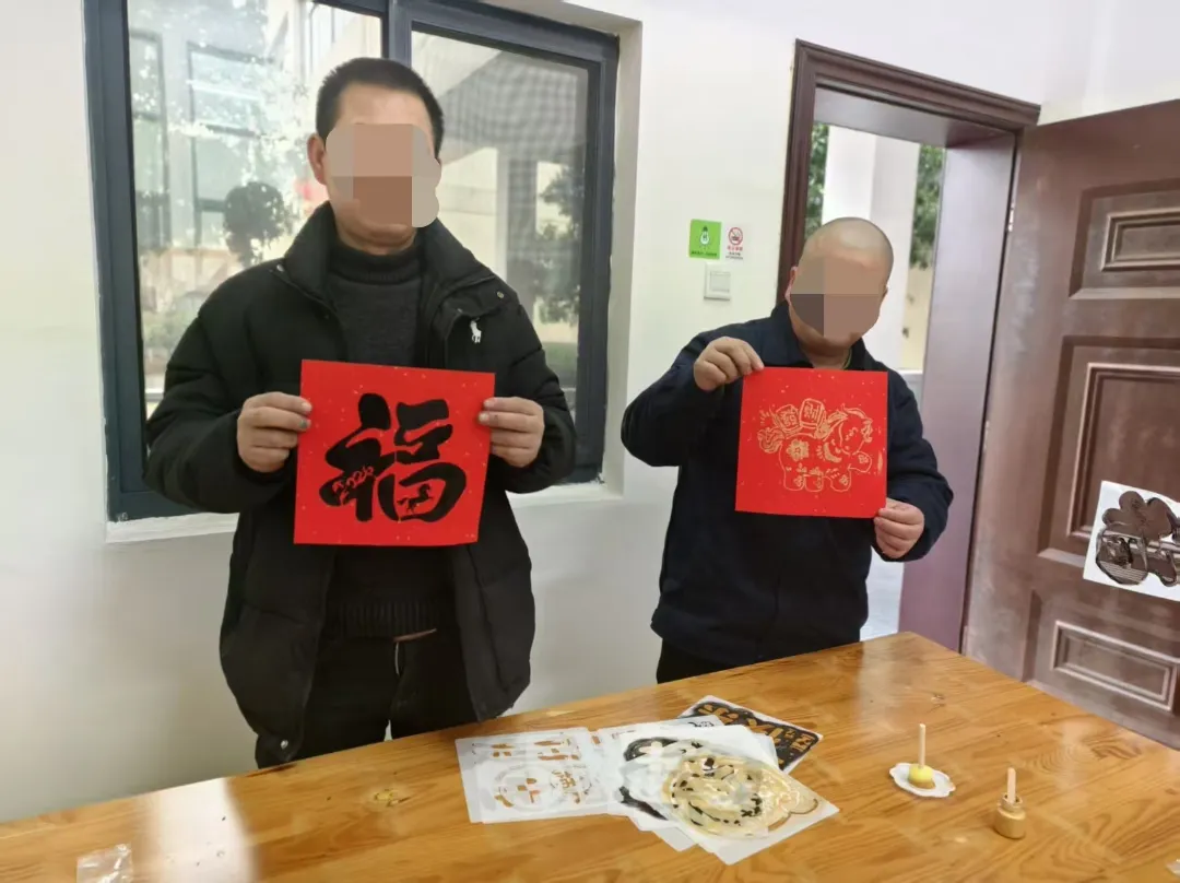 “福”字是春节最具象征意义的符号。在拓印福字活动现场,社工耐心讲解拓印技艺的步骤与技巧。蘸墨、按压、揭纸……一个个形态各异、墨香四溢的“福”字在大家手中诞生。传统年俗与温情救助在活动中交融,增添了节日的仪式感与归属感。