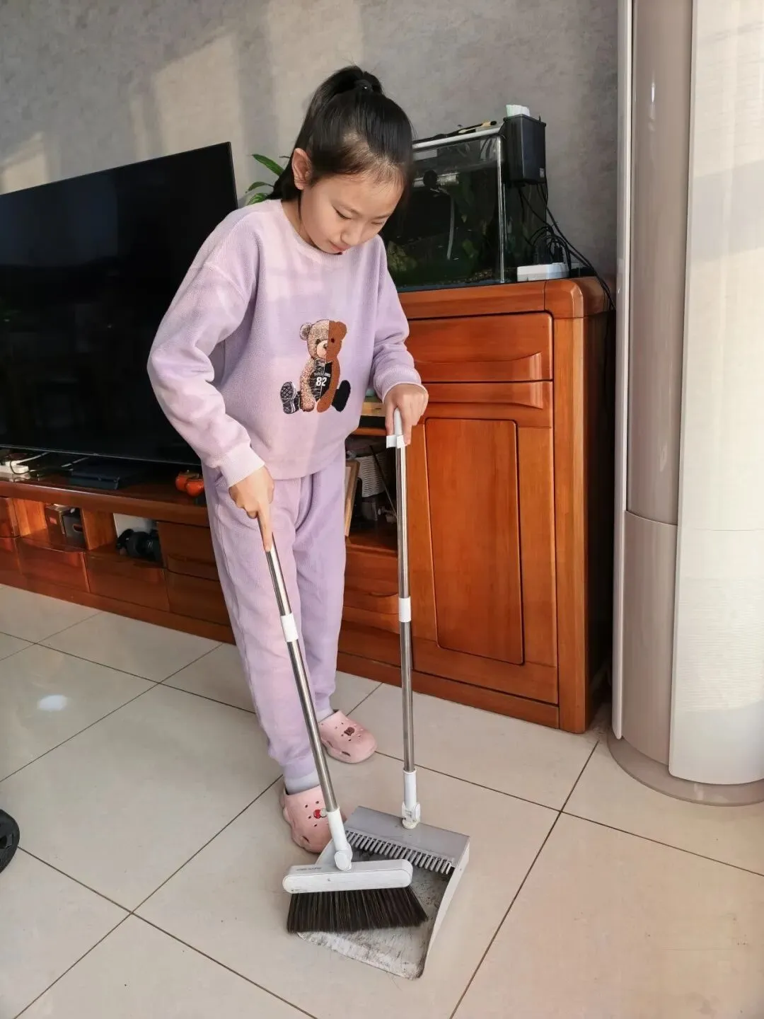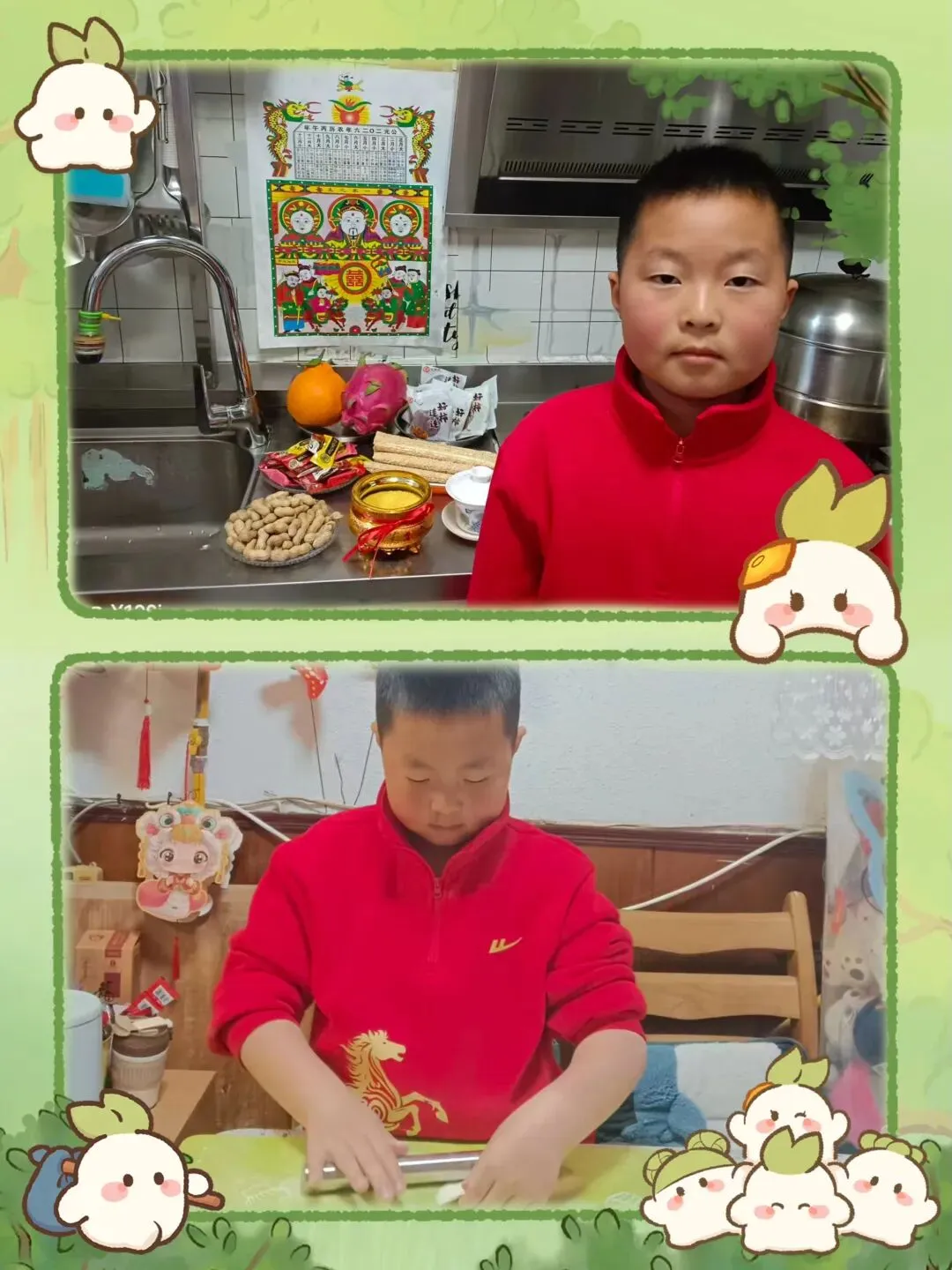 “扫走旧尘,迎来新运!”扫尘是年前最隆重的劳动。三年级的同学们拿起抹布、扫帚、拖把,变身“家庭美容师”。擦玻璃、整理书桌、清扫角落……连窗台缝隙都不放过。爸爸妈妈用镜头记录下这些小汗珠,每一滴都闪着成长的亮光,年味在劳动里悄悄变浓。
