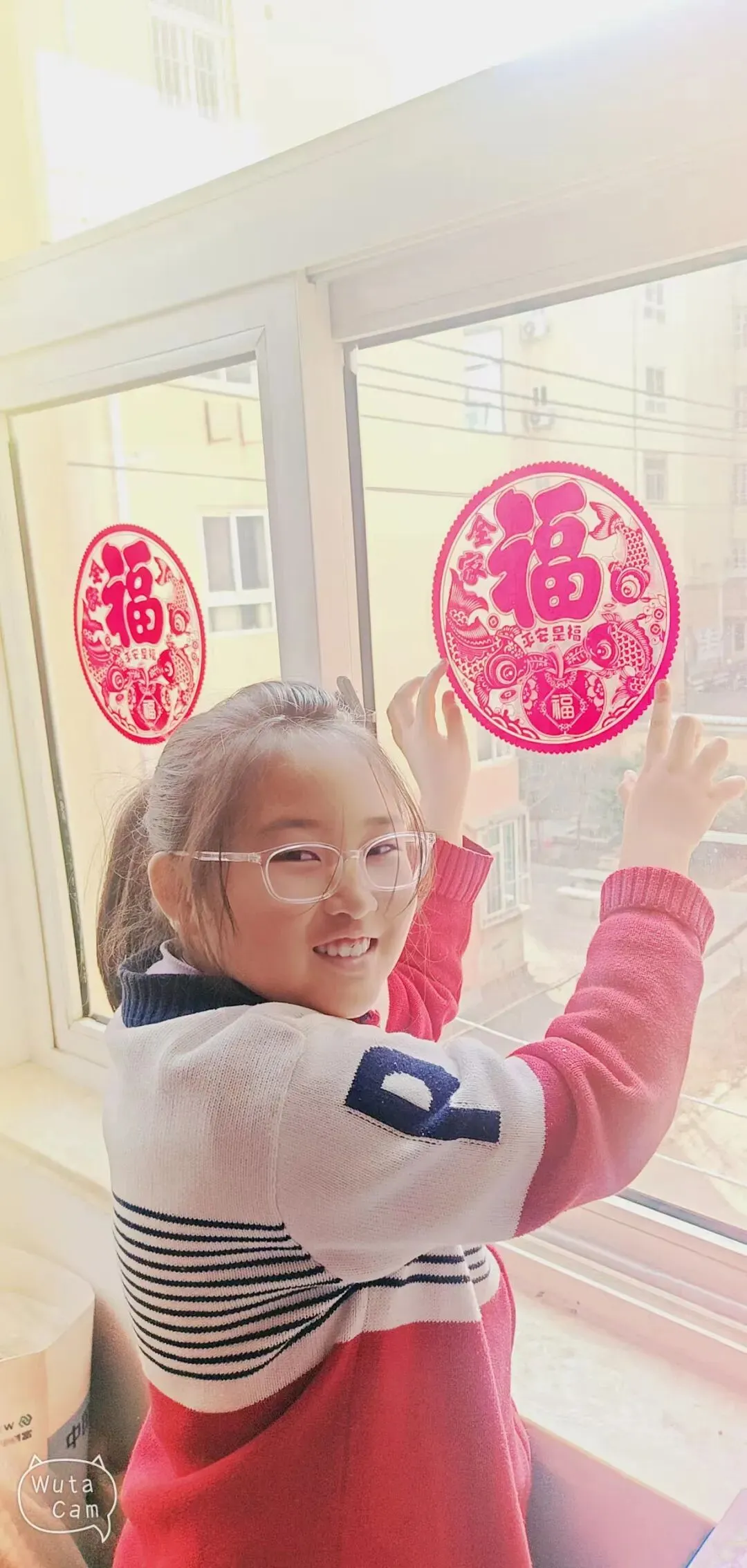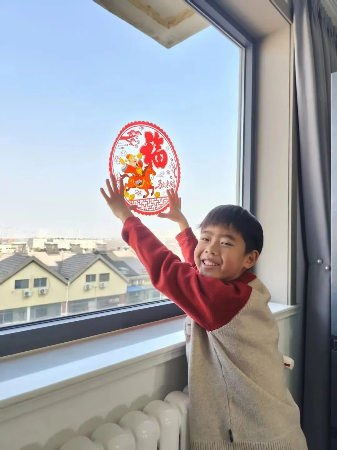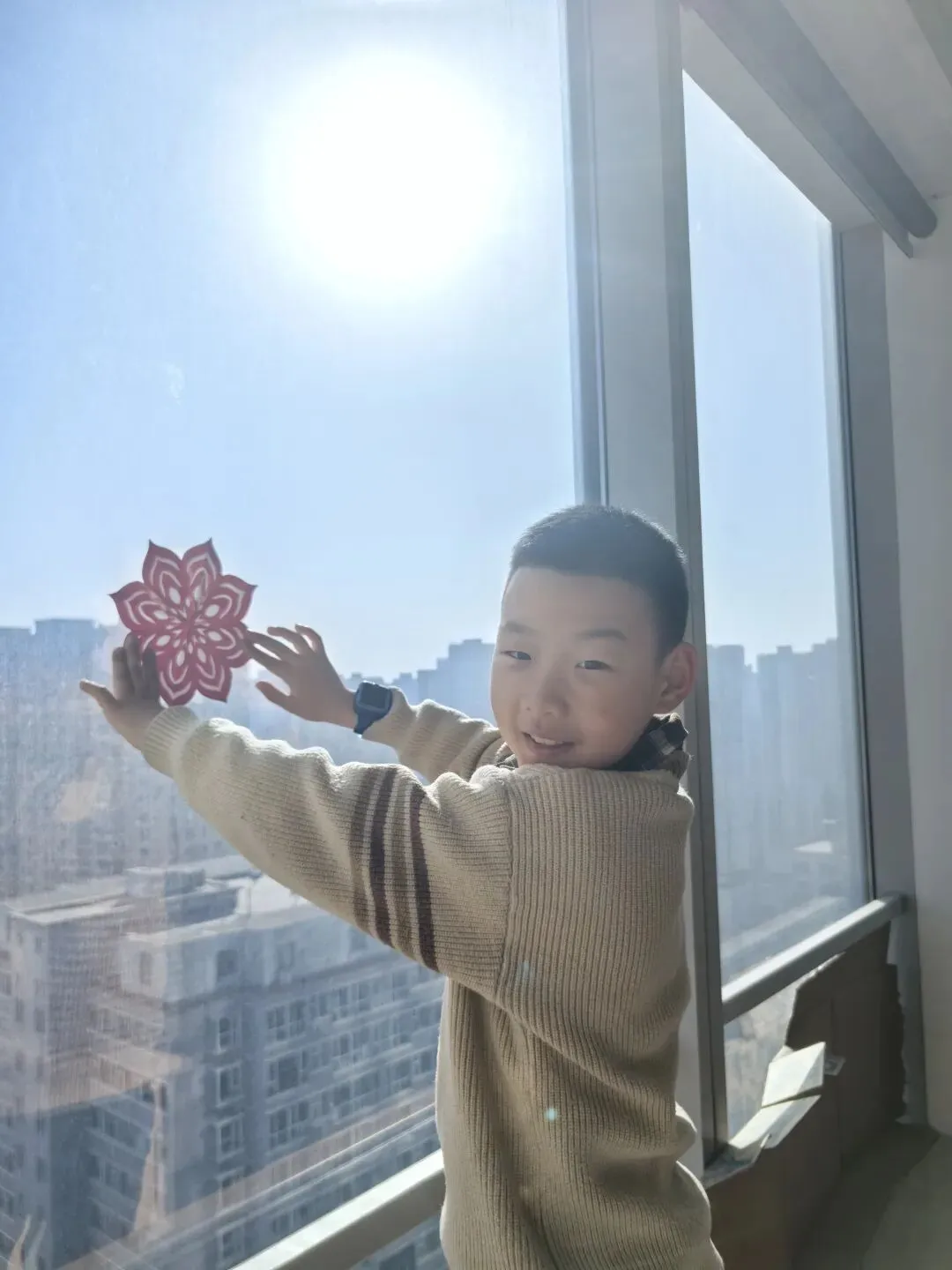 一把剪刀,一张红纸,一双双灵巧的小手剪出了“春”字、“福”字,还有雪花和鲤鱼。剪好后,孩子们迫不及待地把窗花贴在教室的玻璃上、家中的客厅里。阳光穿过镂空的图案,红彤彤的影子落在桌上——这就是中国年的颜色呀!