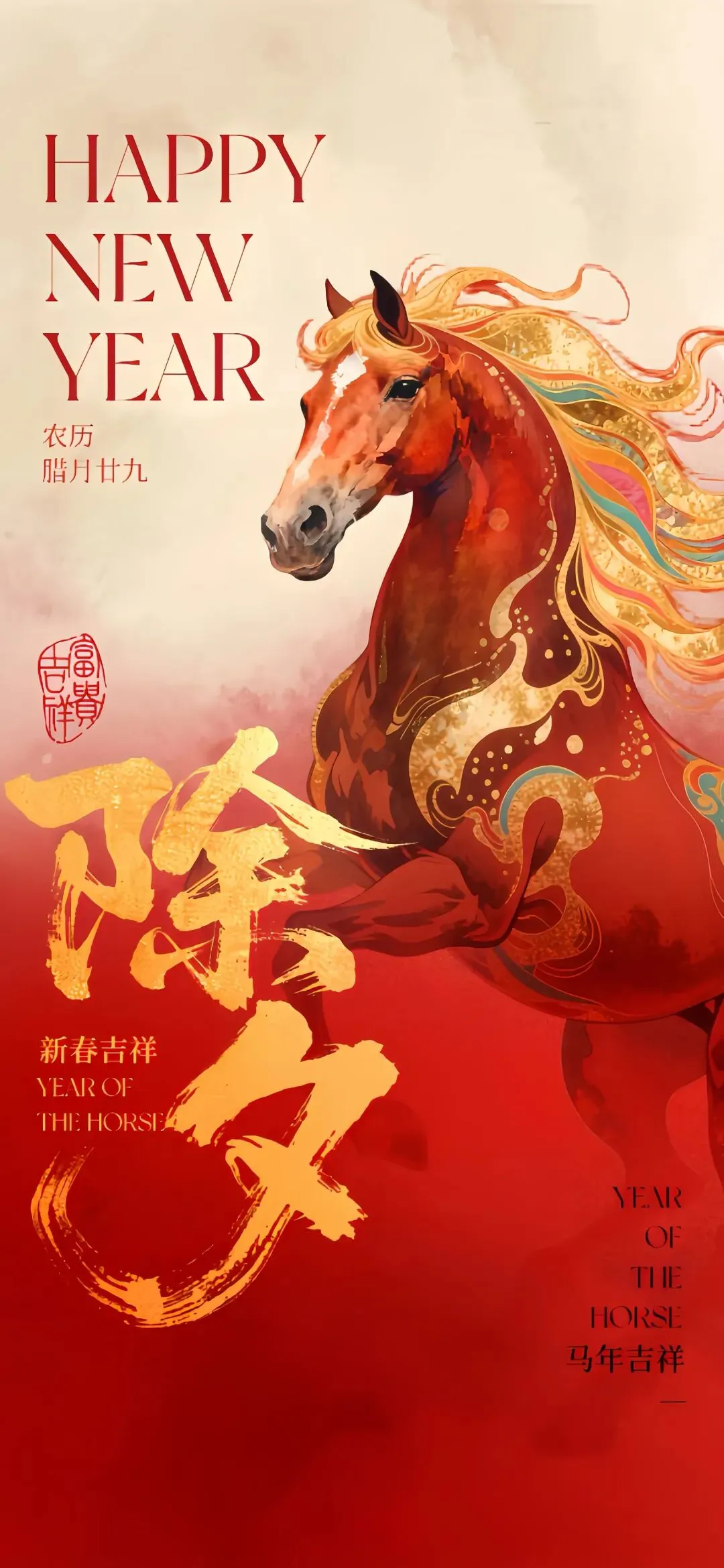 在这新春佳节里,恭祝大家身体健康、事业兴旺、家庭幸福、万事如意!愿我们策马扬鞭,共创美好明天!