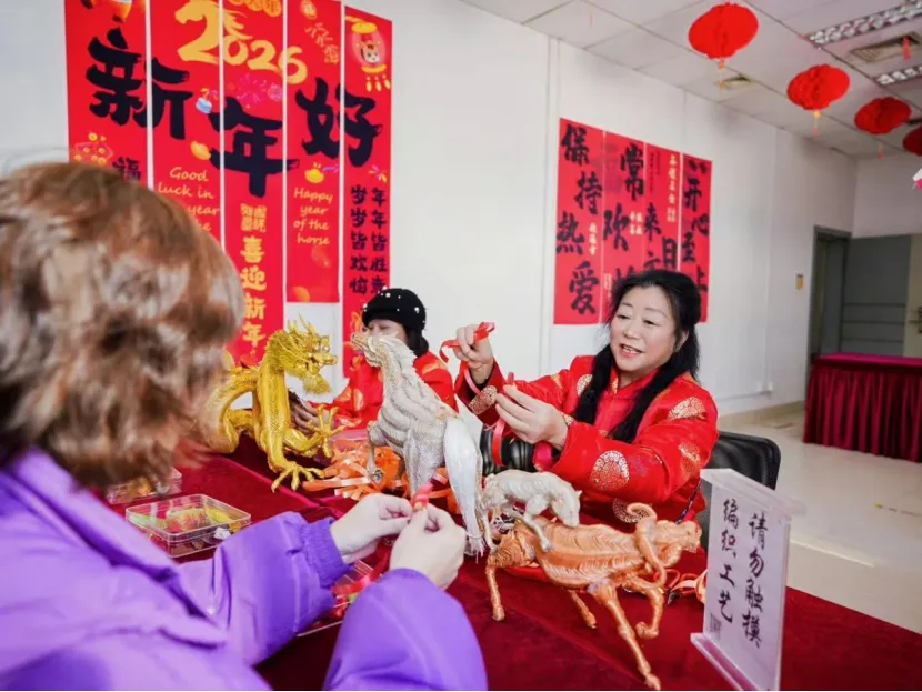 2月11日,长沙非遗馆组织非遗项目走进长沙市第三医院新春游园会。特邀宁乡木活字印刷术市级代表性传承人陈娜、彩带编织技艺传承人杨红、糖画制作技艺区级代表性传承人尹剑钊三位非遗传承人走进活动现场,让传统技艺在欢声笑语中传递温情与祝福。在传承人的指导下大家抹墨、铺纸、刷印的完整工序,亲手拓印吉祥话与经典诗句;感受缤纷丝线在指尖穿梭,编织出一条条寓意美好的手链、挂饰;观看以勺为笔、以糖为墨的糖画。本次活动将非遗技艺巧妙融入节庆场景,让传统技艺在欢声笑语中传递温情与祝福。