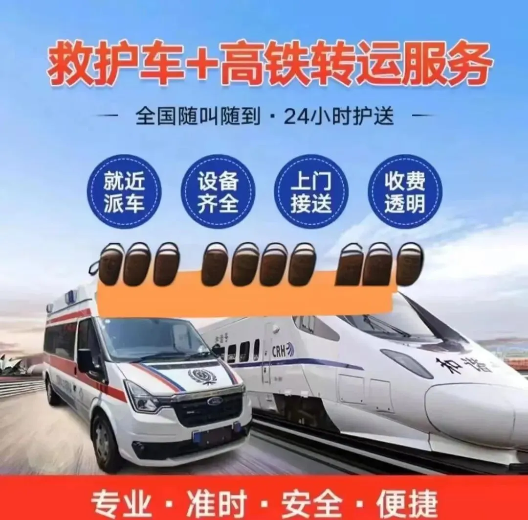 我们是救护车出租转运公司,120救护车接送病人预约护送。24小时为术后康复、危重患者及跨区域就医人群提供专业医疗转运服务,提供120救护车转运出租‖私人120救护车(非急救)‖跨省长途转运‖危重病人转运‖市内转运‖术后康复病人转运‖高铁病人转运‖患者返乡‖大型活动赛事保障‖配备ICU设备:呼吸机▪心电监护仪▪吸痰器•微量泵•氧气▪急救药箱▪专业医护团队