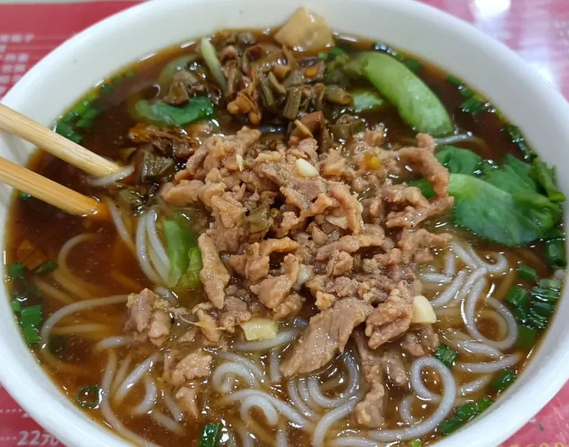 汝城米粉:这东西看着简单,其实讲究。粉是干切粉,得在开水里烫得刚刚好,不软不硬。精华全在那勺红油和特制的辣椒粉里。不是那种直愣愣的辣,而是带着焦香的燥辣。拌匀了,吸溜一口,汗立马从额头上冒出来,嘴里火辣辣的,心里却通透了。再配个在98度温泉水里煮熟的鸡蛋,蛋黄嫩得像豆腐脑,绝了。