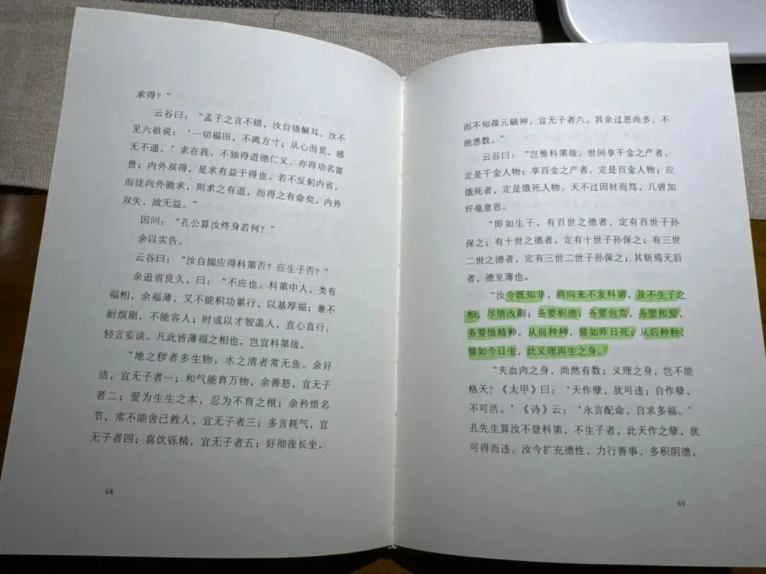 书是多年前买的,纸页已微微泛黄。今晚重读,却像第一次遇见。袁了凡遇到的那位孔先生,像极了生活里那些告诉我们“命该如此”的声音——考第几名,领多少俸禄,何时告老还乡,甚至一生无子,都算得清清楚楚。后来的二十年,果然分毫不差。