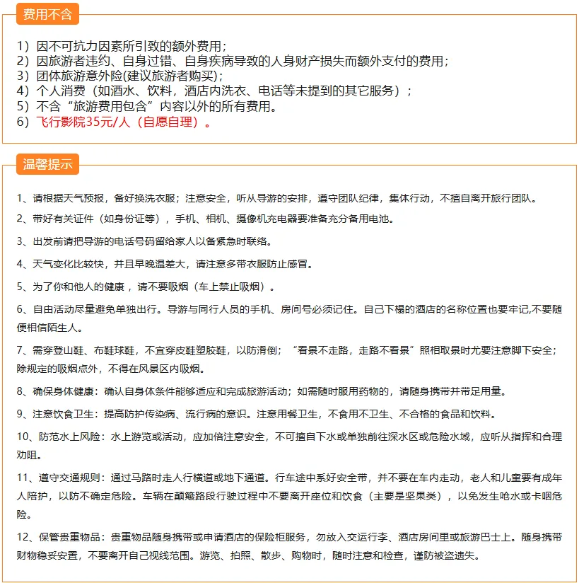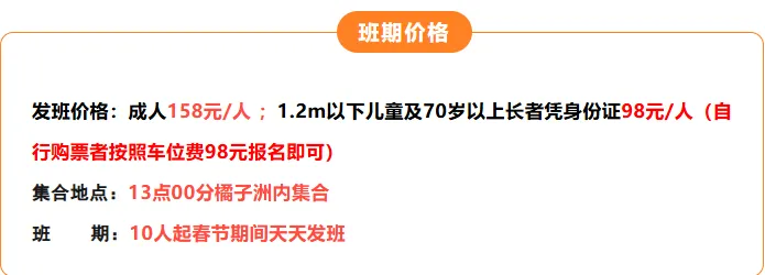 1.2米以下儿童和65岁以上长者:98/人