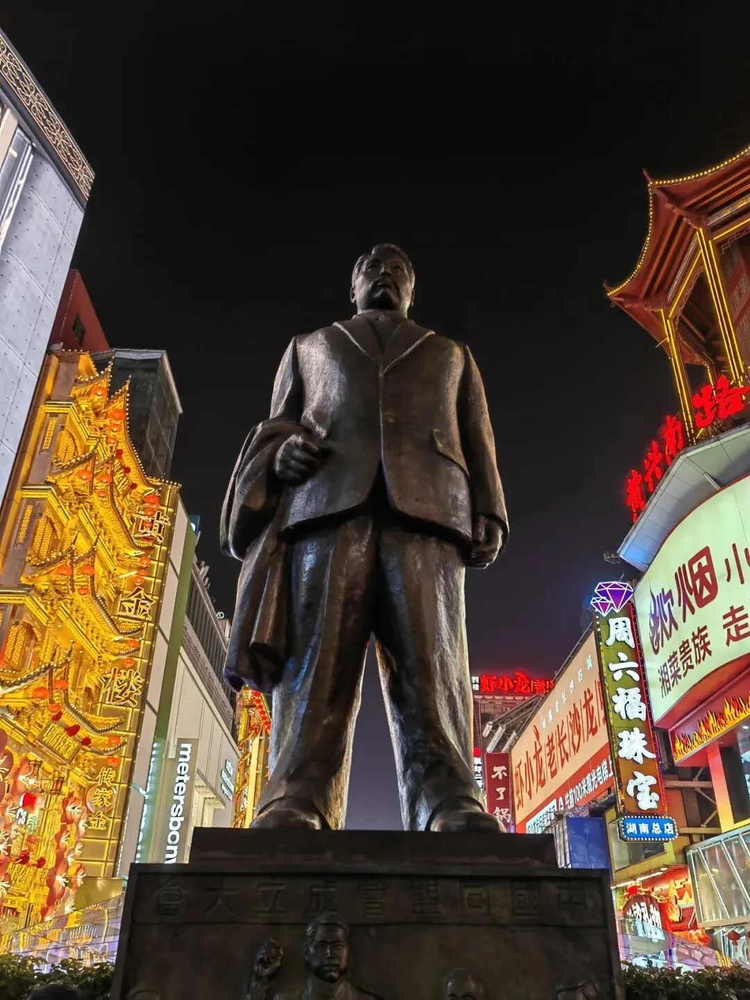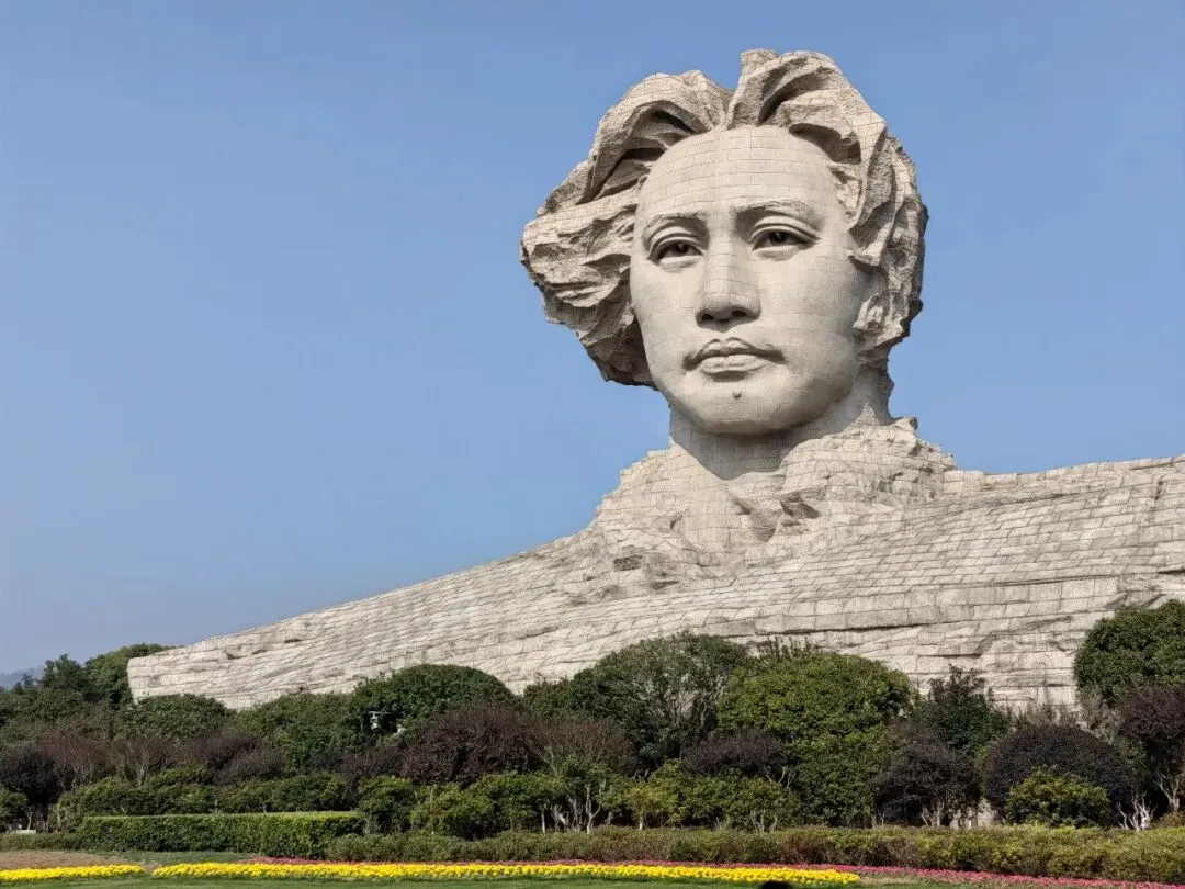 地铁直达橘子洲,正面的青年毛泽东雕像,侧面换个角度,显出一些年纪和忧愁,也算是雕塑创作者的一点巧思了