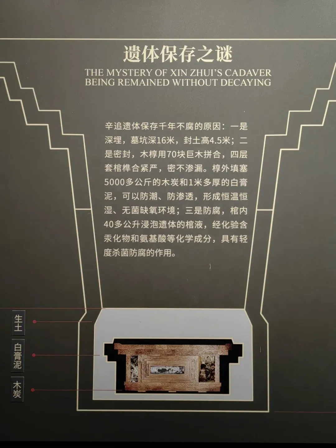 尸身千年不腐,据说至今肌肤依然保有弹性,展现了中国古人精湛的防腐技术,作为罕见的湿尸,与埃及木乃伊干尸其名