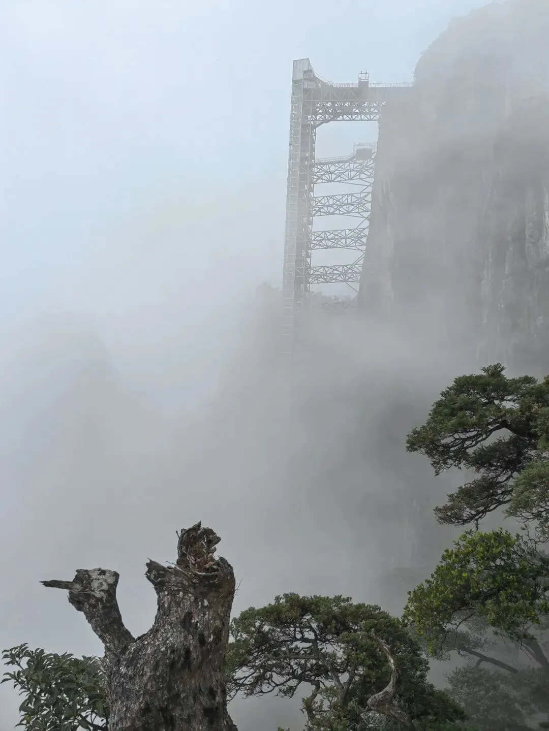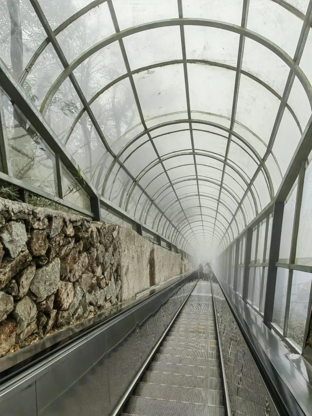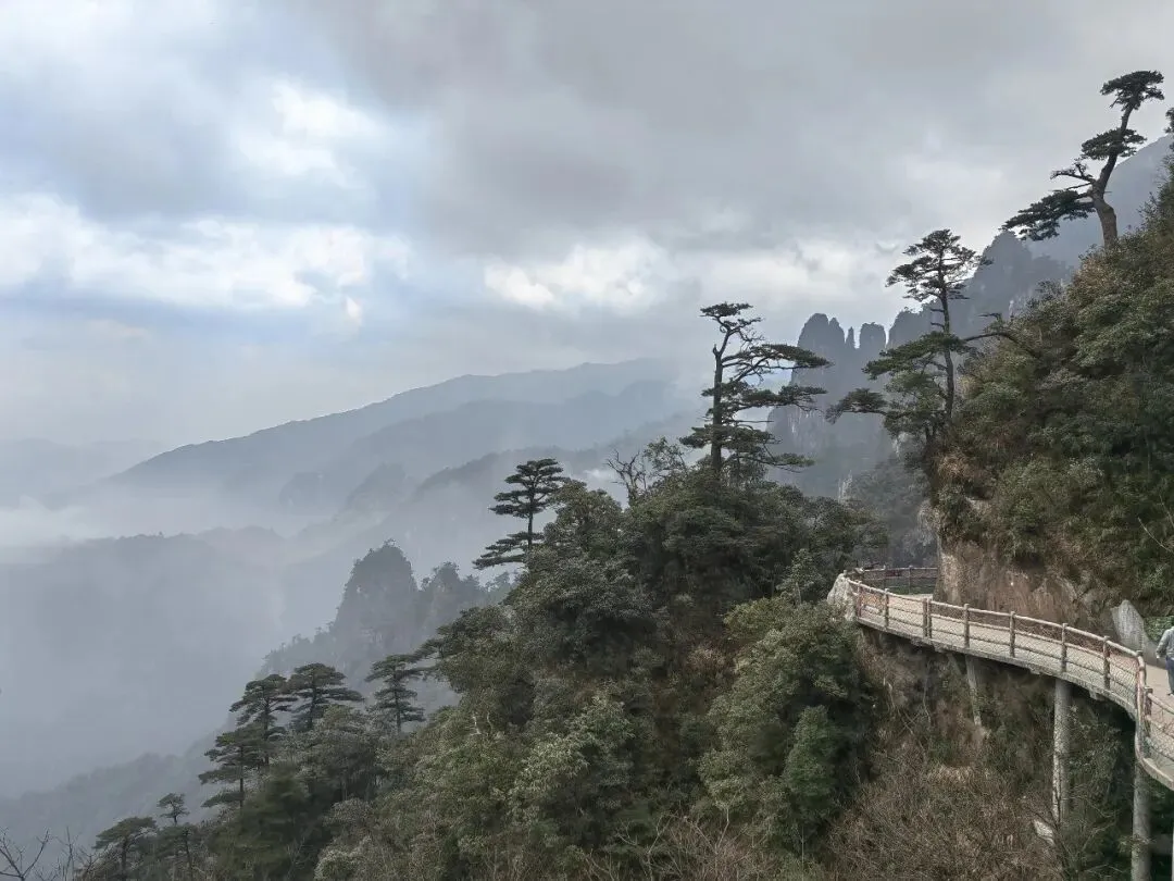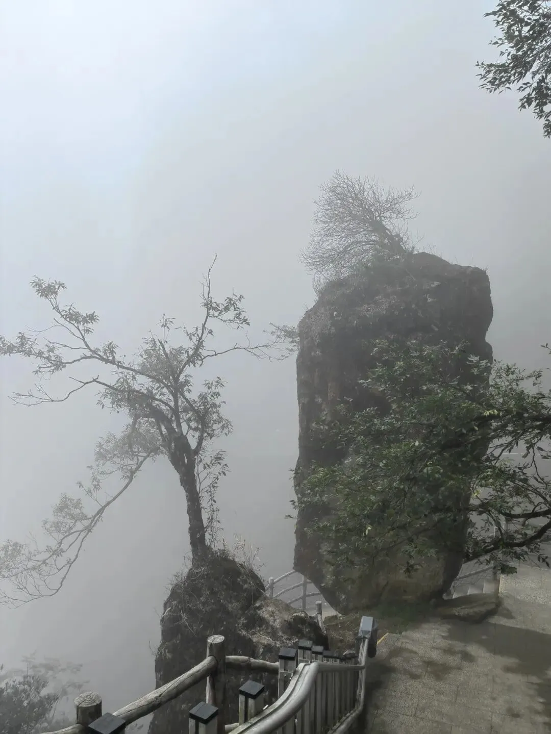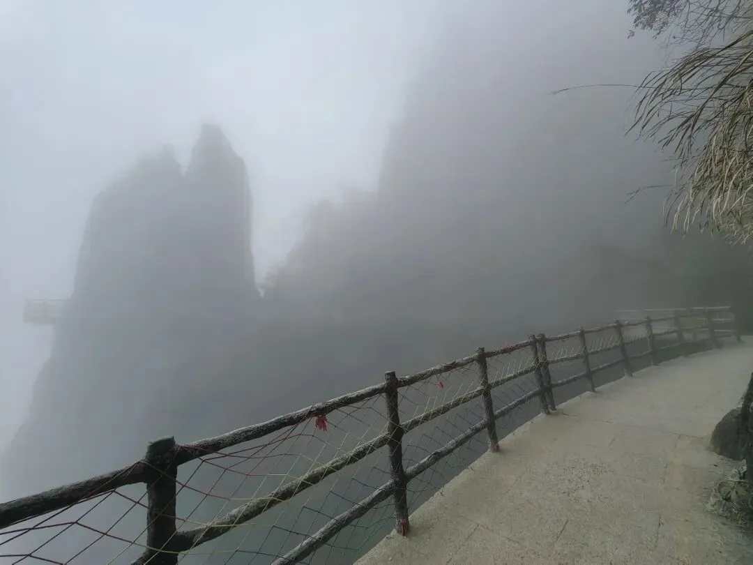 雾里穿梭,第一视角。如此高的山峰,山顶天气多变,不够冷,没看到雾凇,随缘下次再见吧