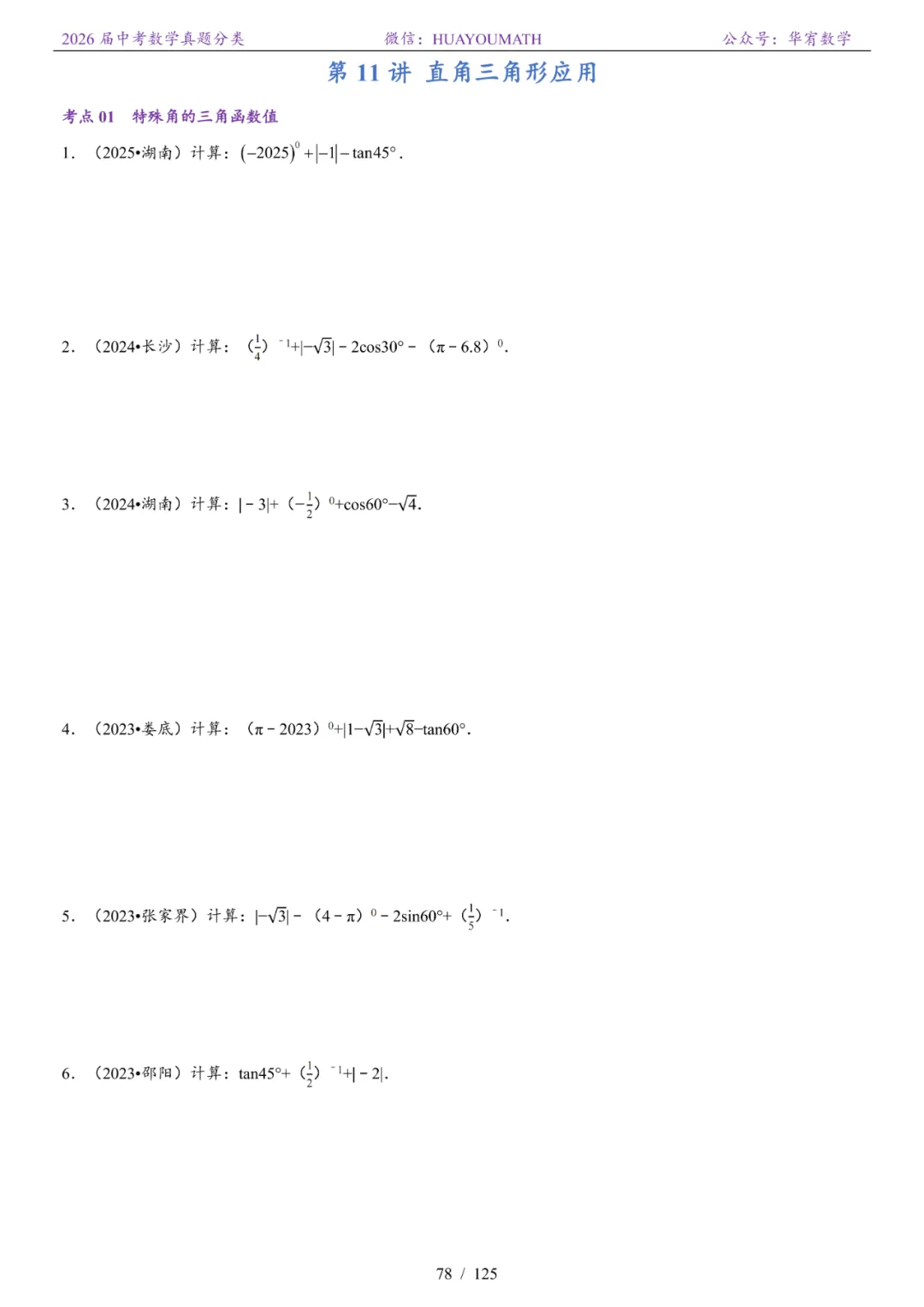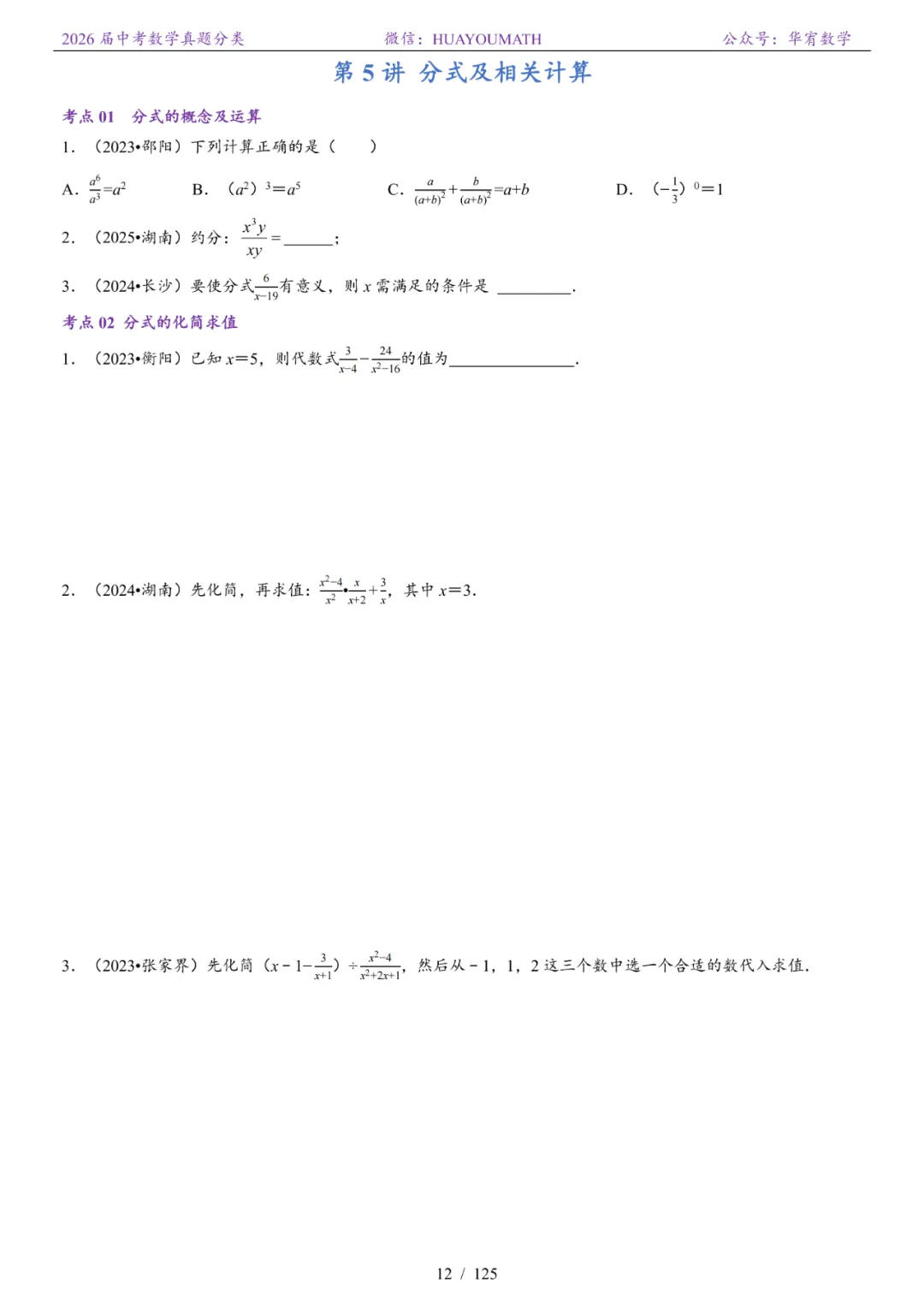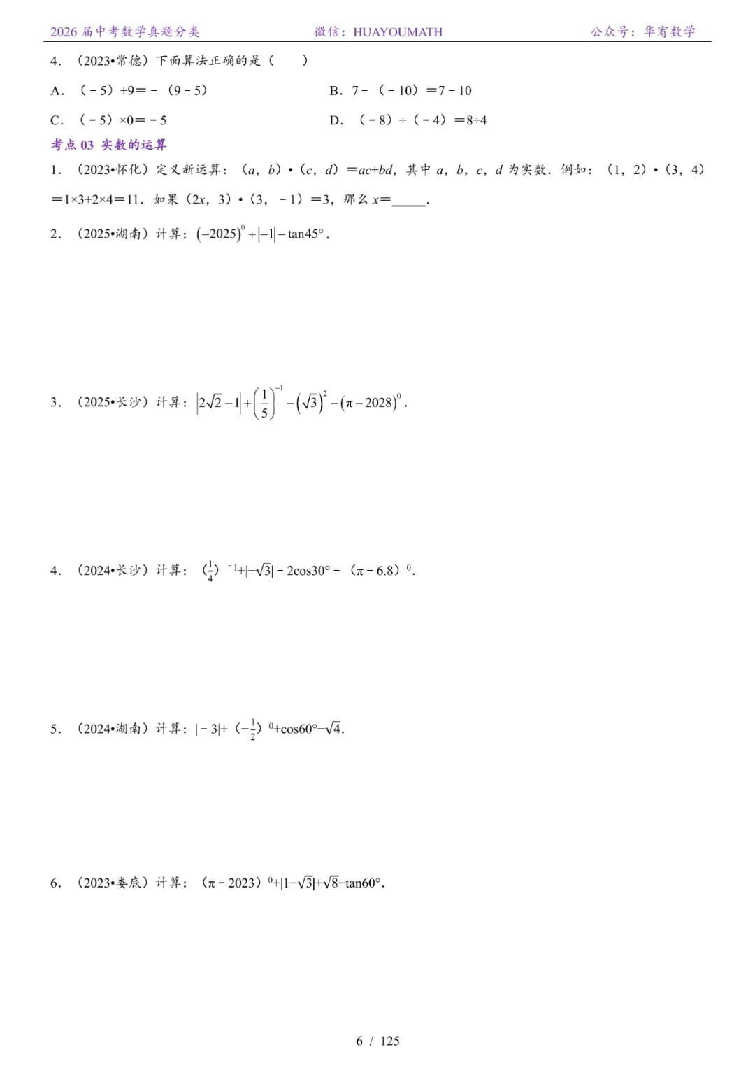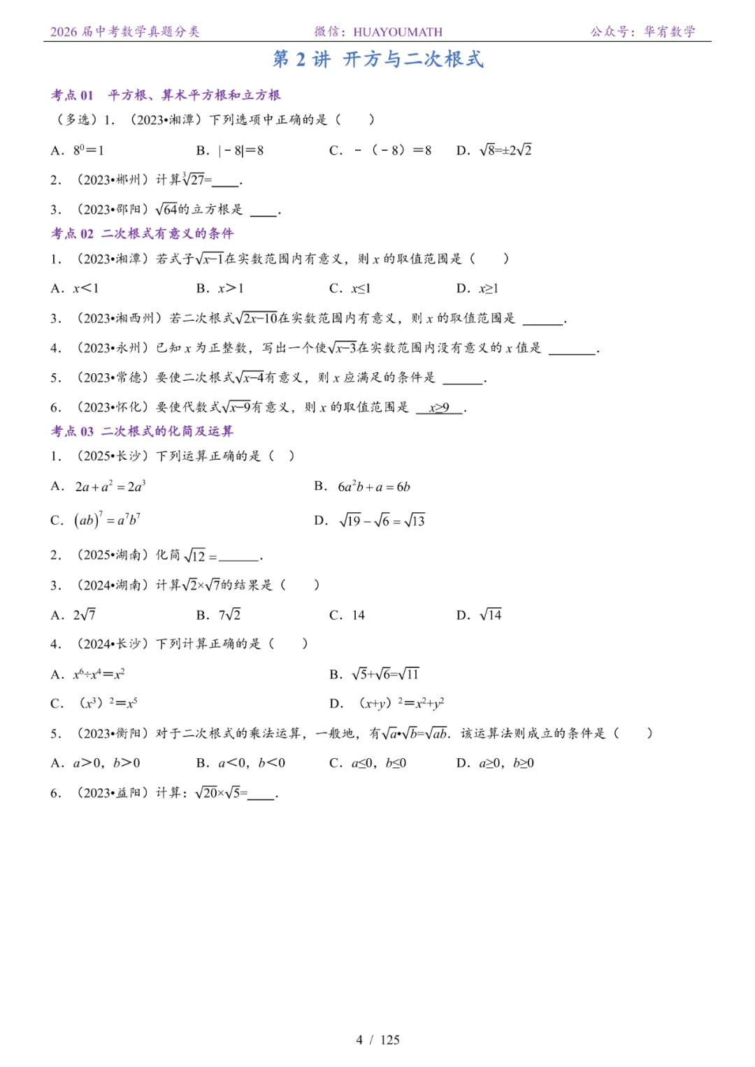 >2026届长沙中考数学真题分类