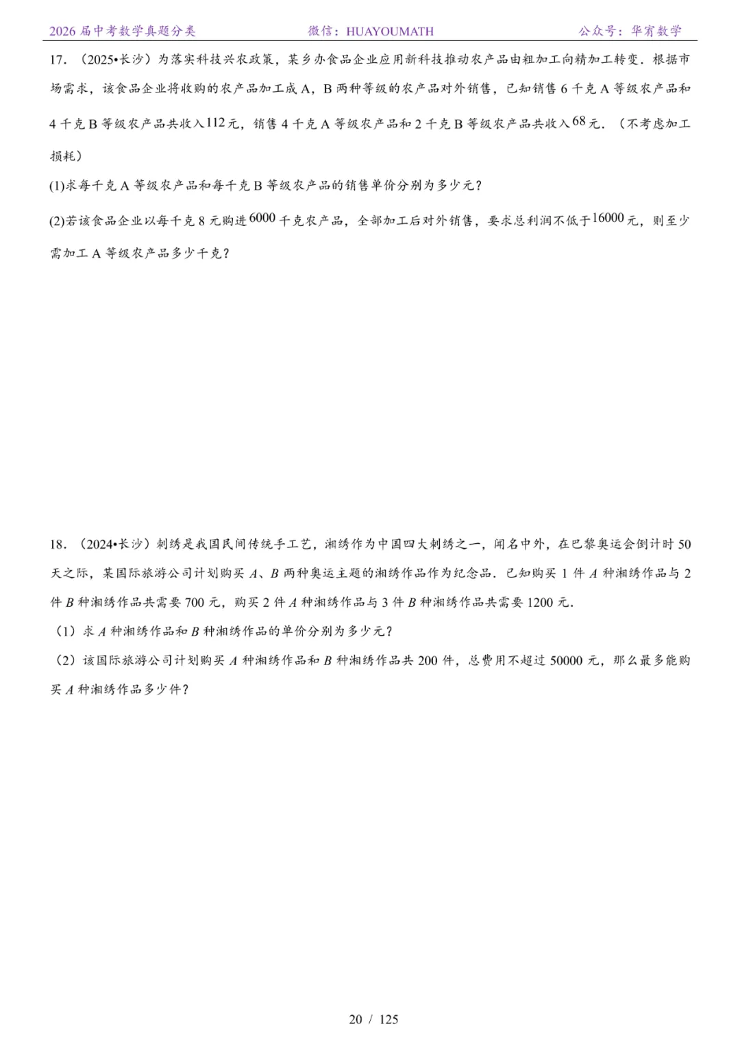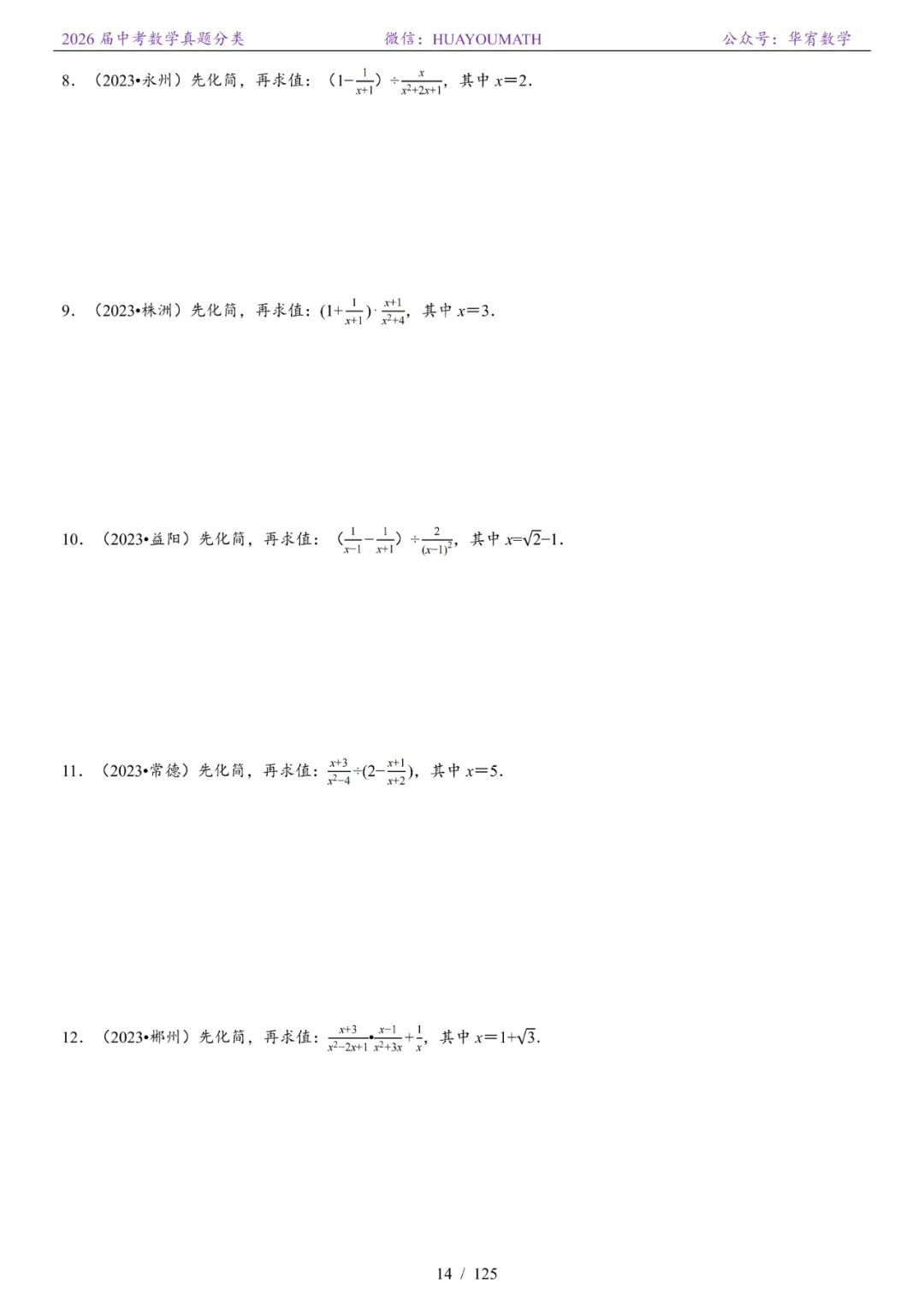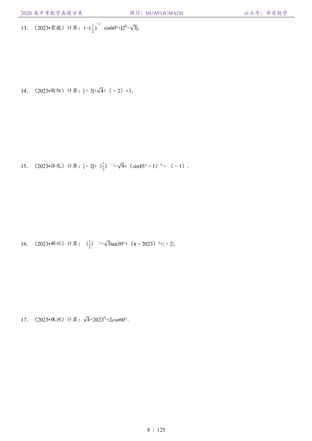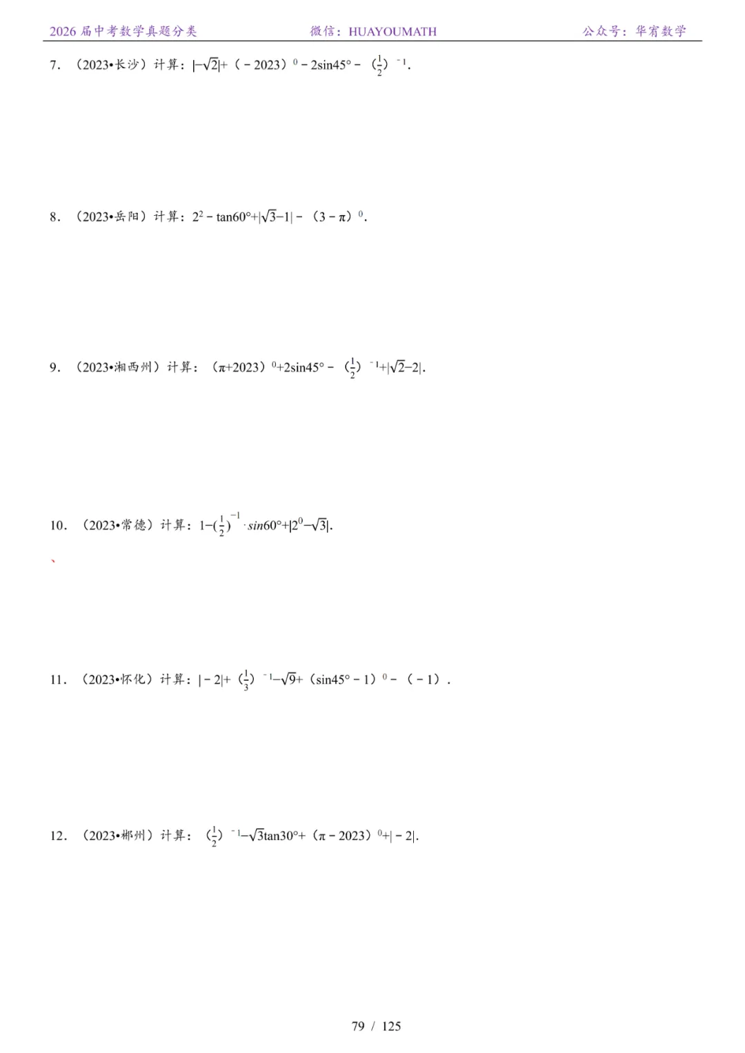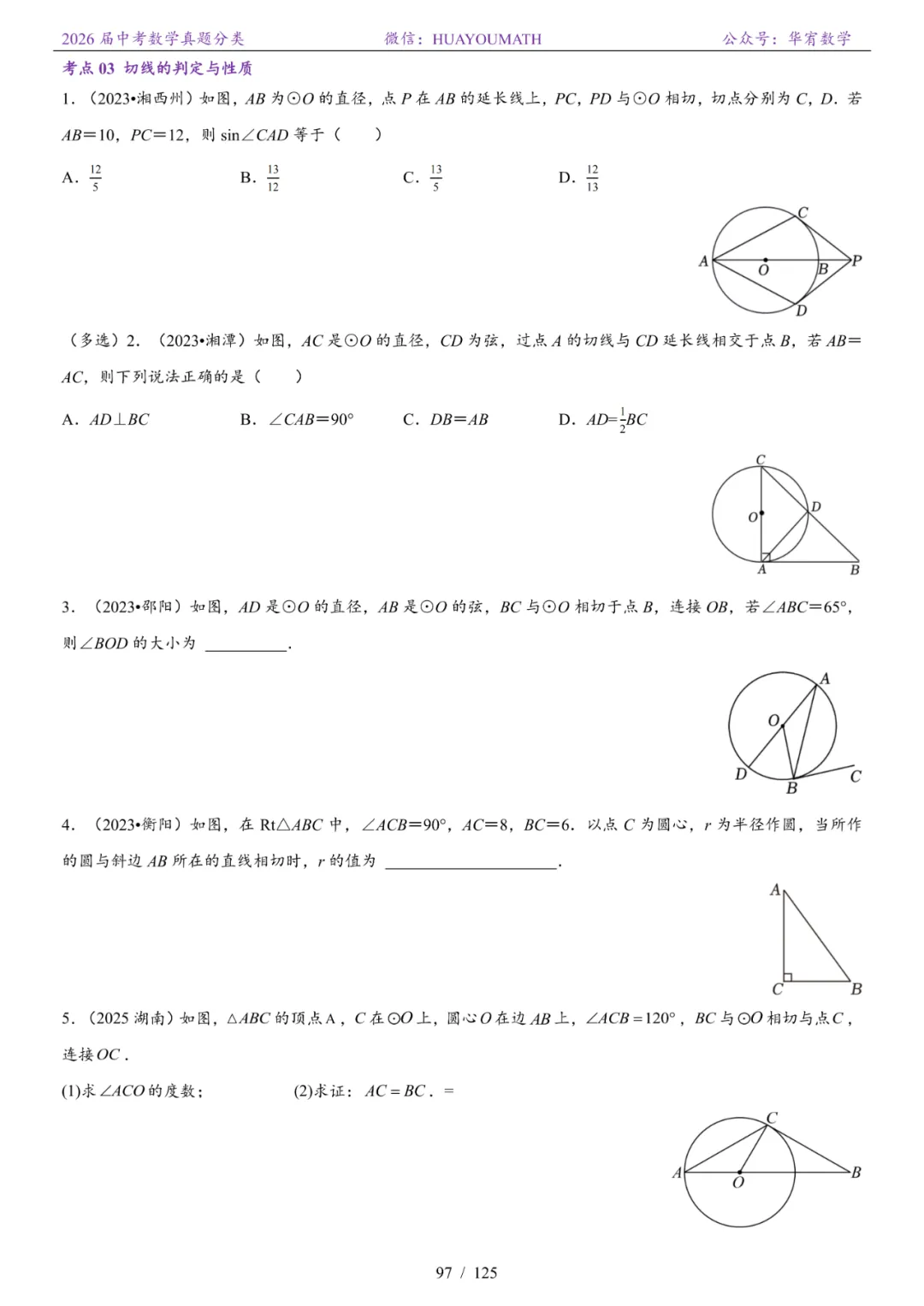>2026届长沙中考数学真题分类