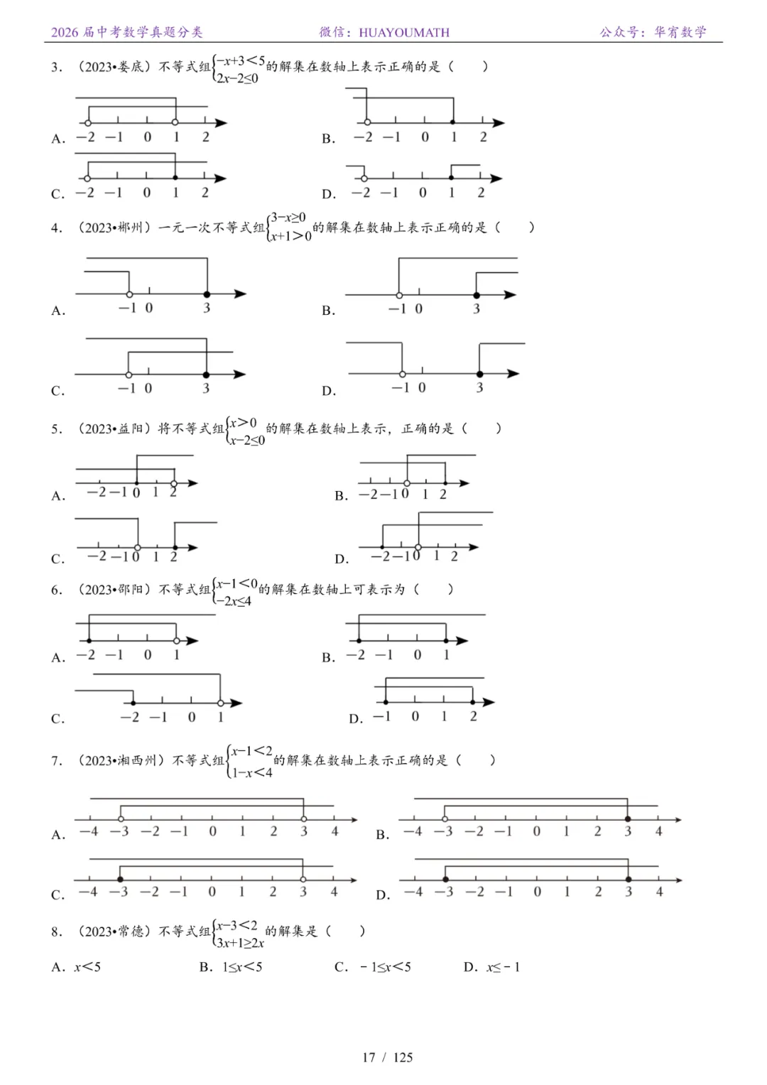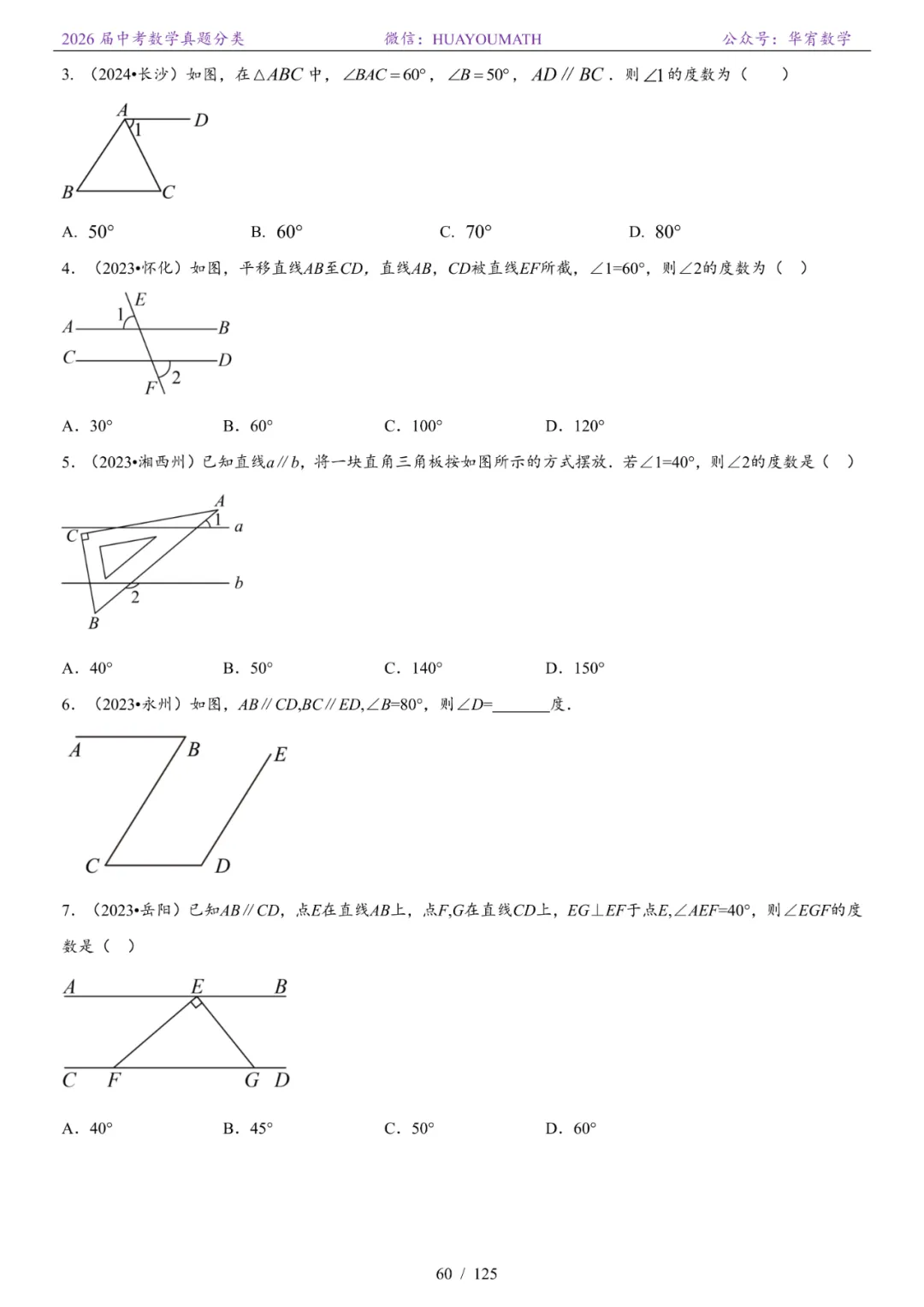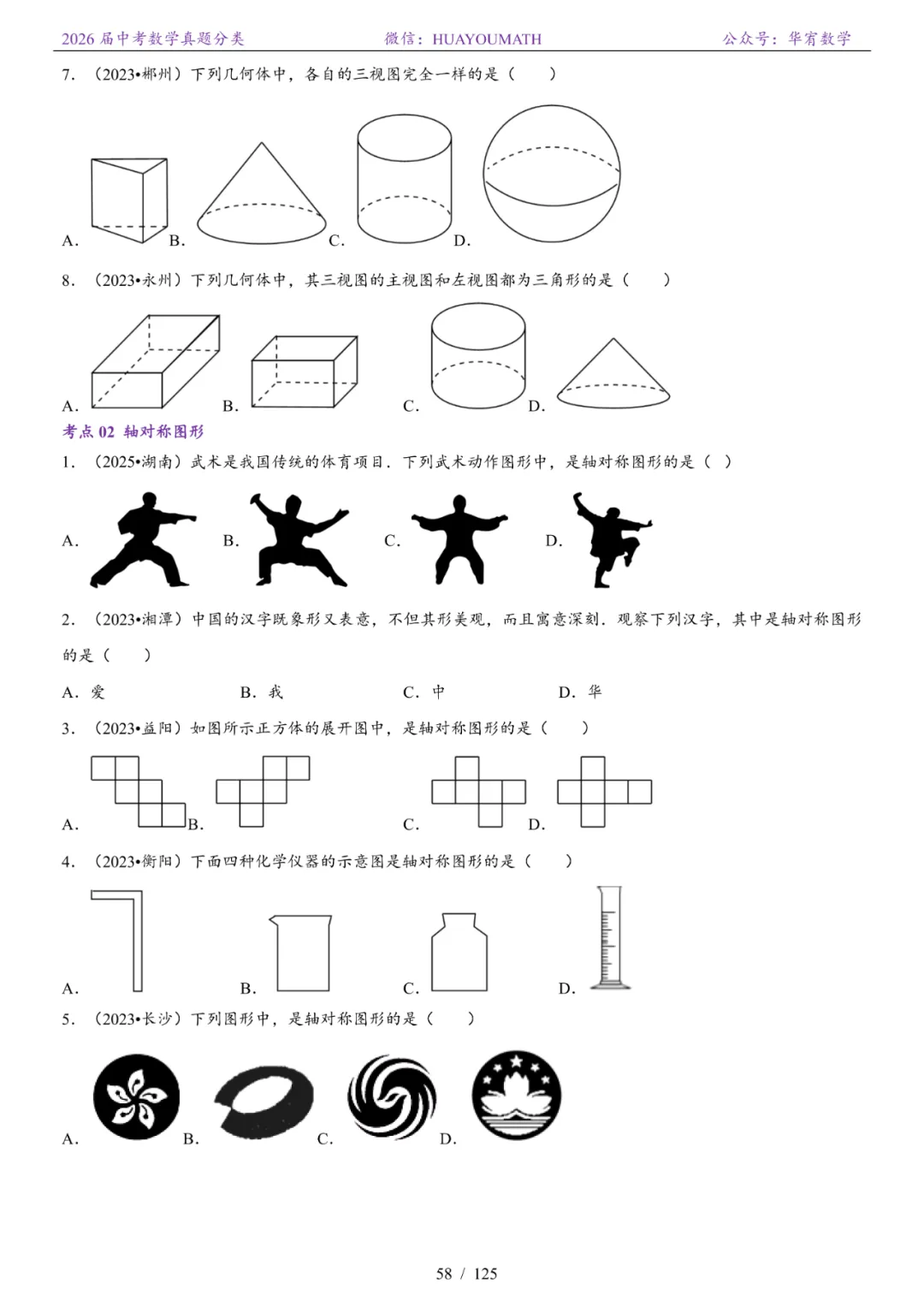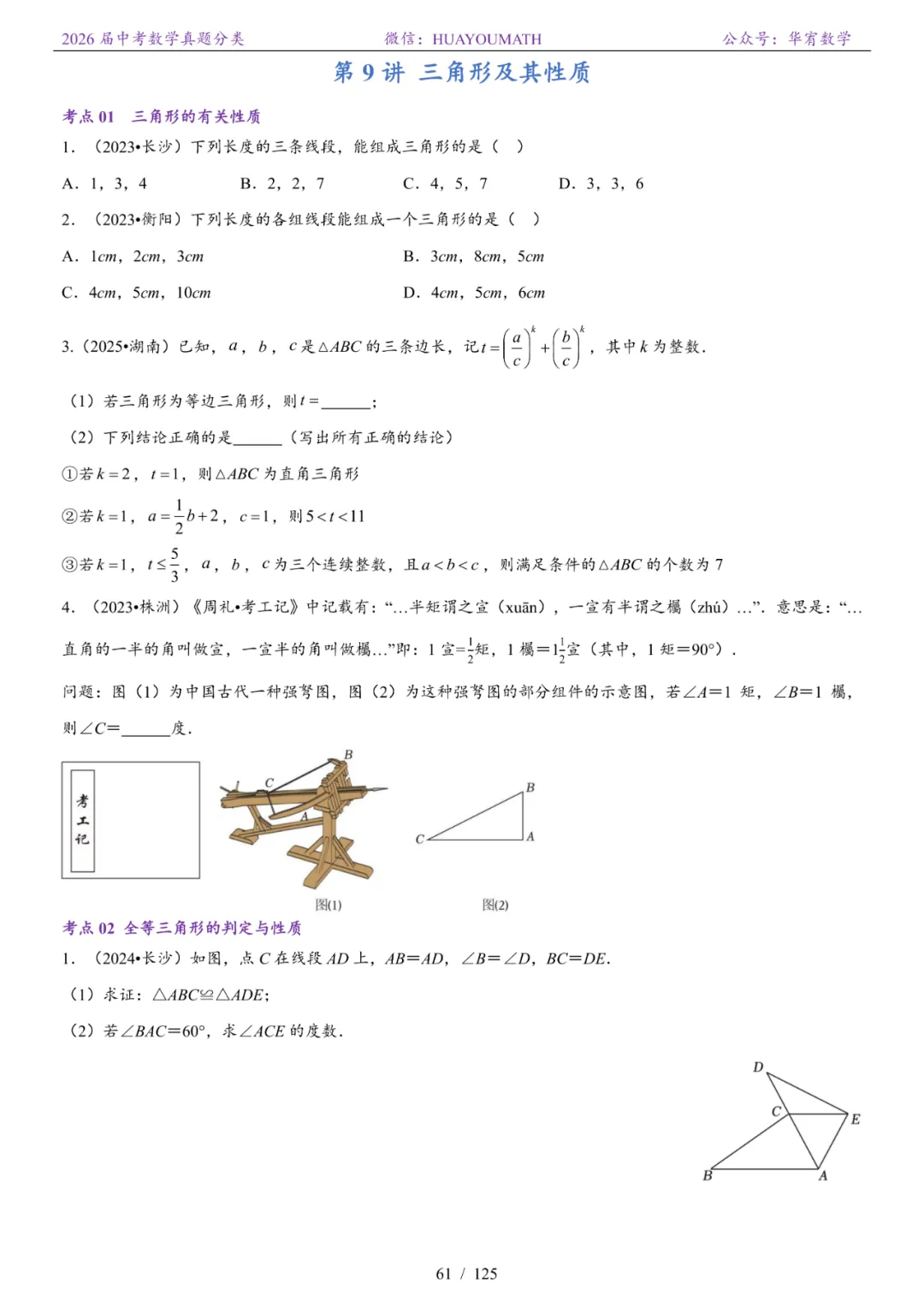 2026届长沙中考数学真题分类