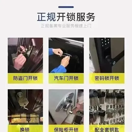 技术实力:专业培训团队,技术过硬;传统机械锁与现代智能锁均可处理;防盗门锁与汽车锁维修经验丰富
