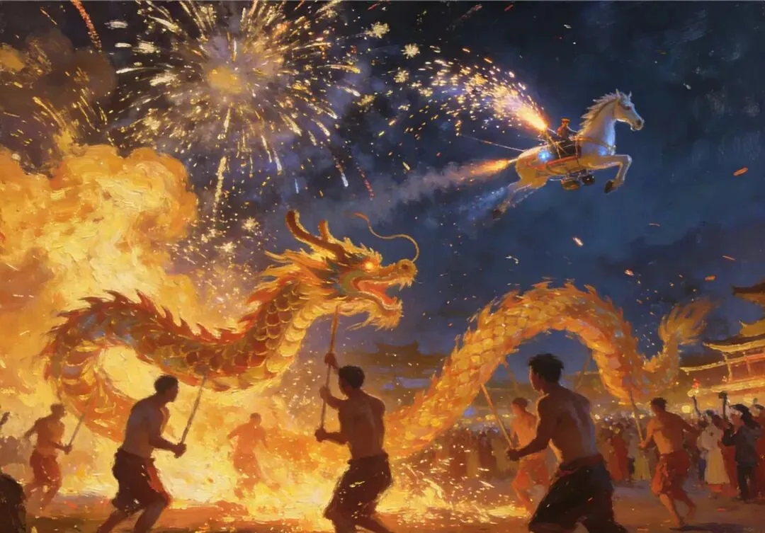 夜幕降临,长沙便成了光影的世界。南郊公园的国潮千灯会亮起,万千灯组如星河垂地,林间的诗词灯廊流淌着盛唐余音,朱雀女神灯组明眸善睐,引着游人步入奇幻幻境。铜官窑的夜空格外璀璨,1600℃的铁水被奋力泼向空中,化作漫天钢花,赤膊的舞龙者在火树银花中穿梭,与“天马”飞行器的冷焰火相映成趣,演绎着“火树银花不夜天”的盛景。橘子洲头的灯光秀如期上演,暖黄的光线勾勒出青年雕像的轮廓,数百架无人机在空中组成“2026焕新出发”的字样,江风里满是人们的欢呼声。沿江的茶馆里,热气腾腾的剁椒鱼头端上桌,鲜辣的滋味刺激着味蕾,配上一杯温热的米酒,推杯换盏间,都是团圆的暖意。