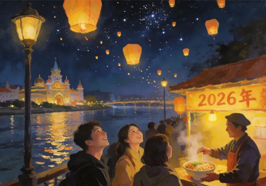 午夜时分,方特的夜空升起万盏孔明灯,点点星光载着心愿缓缓升空,与湘江的波光交相辉映。人们并肩而立,在倒数声中迎接新年,方言的祝福、孩童的欢笑、友人的畅谈,都融进这温柔的夜色里。街边的小店依旧灯火通明,老板递来一碗热乎的刮凉粉,酸辣的滋味驱散了夜寒,也拉近了彼此的距离。