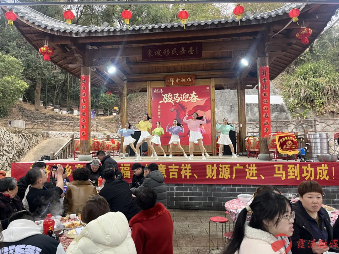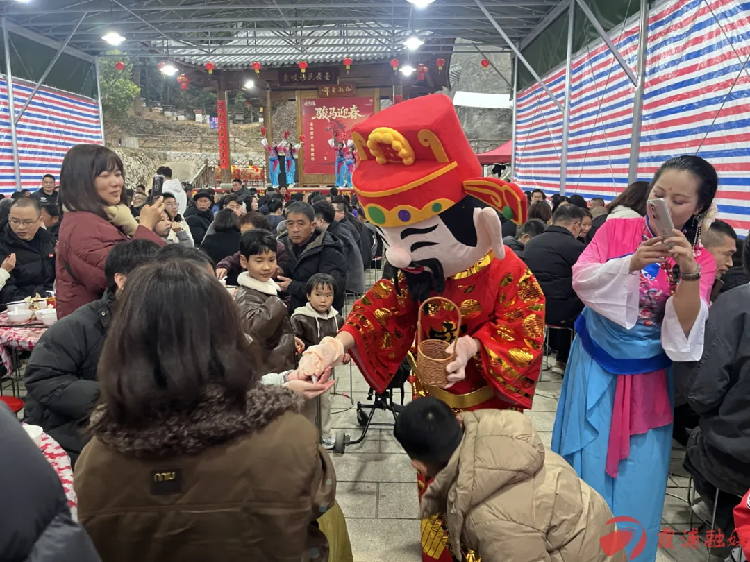 开席之前,一场振奋人心的表演率先登场,鼓点铿锵、舞姿昂扬,每一个动作都饱含着乡亲们对来年美好生活的热切期盼,为这场团圆宴拉开了热闹的序幕。
