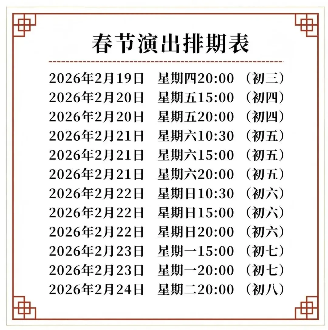 演出时间:2月19日(正月初三)营业