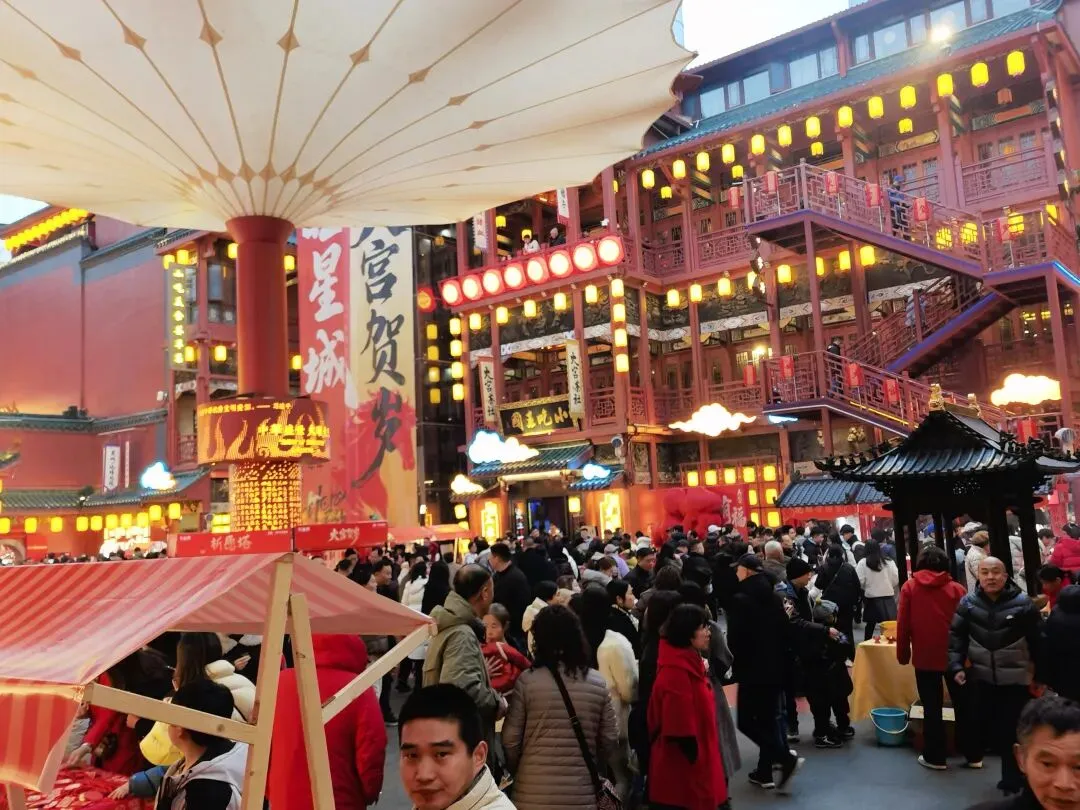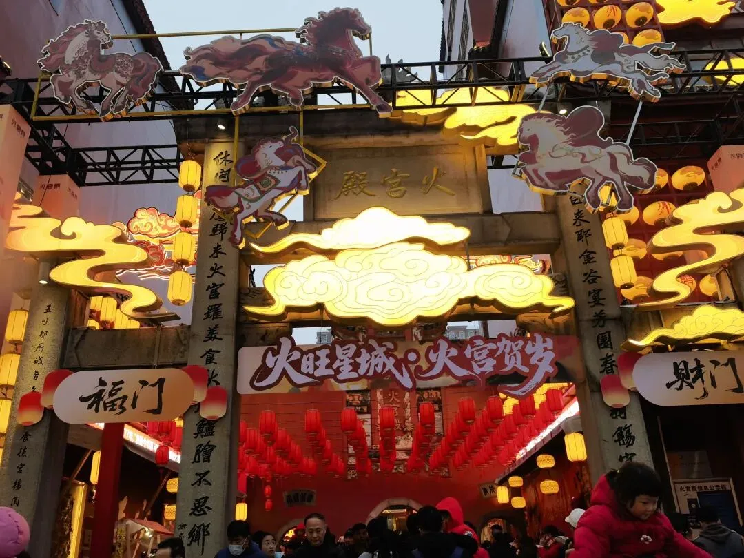 新年第一天的火宫殿人山人海,从除夕到初五火宫殿的马年新春大庙会在此举行,节目精彩纷呈。