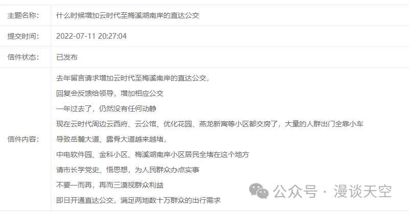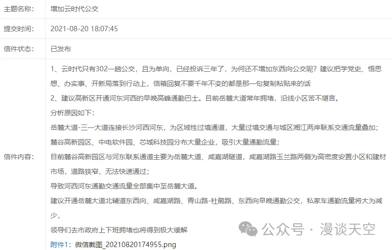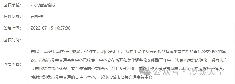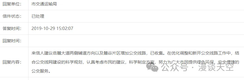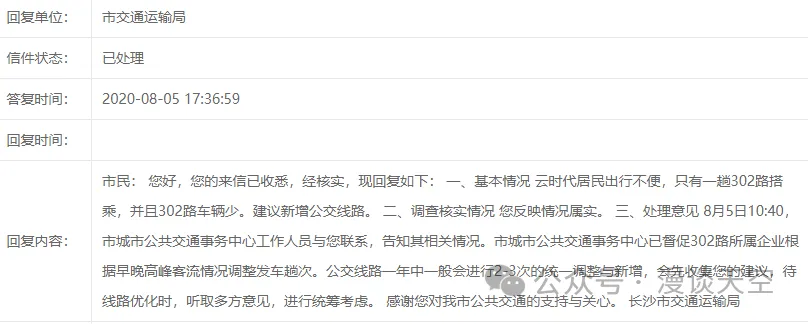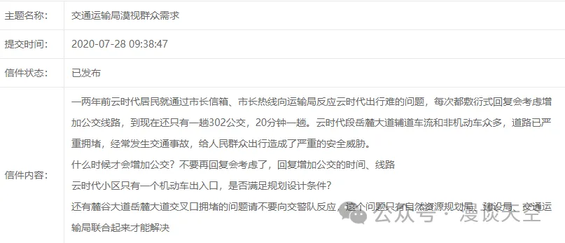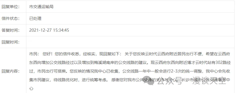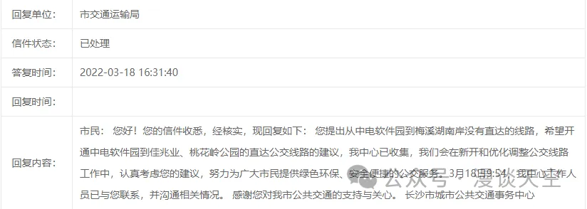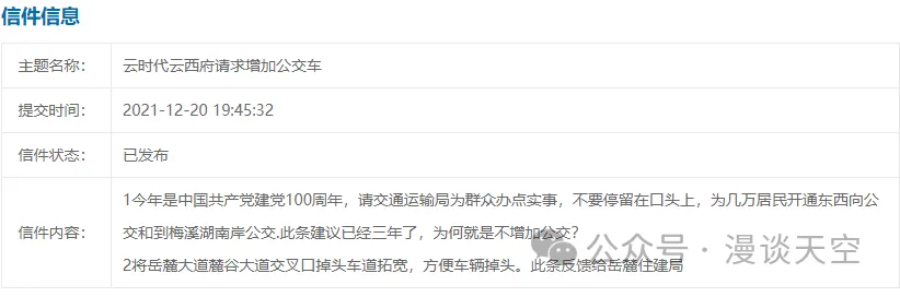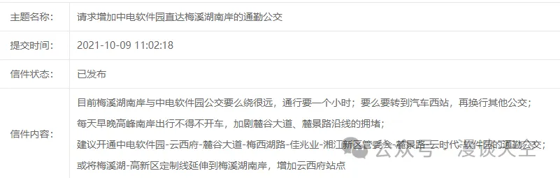 可以看到,从2019年起,市民朋友一直在呼吁增加东西向和南北向公交,缓解岳麓大道与望青路交叉口压力,为群众出行提供便利。