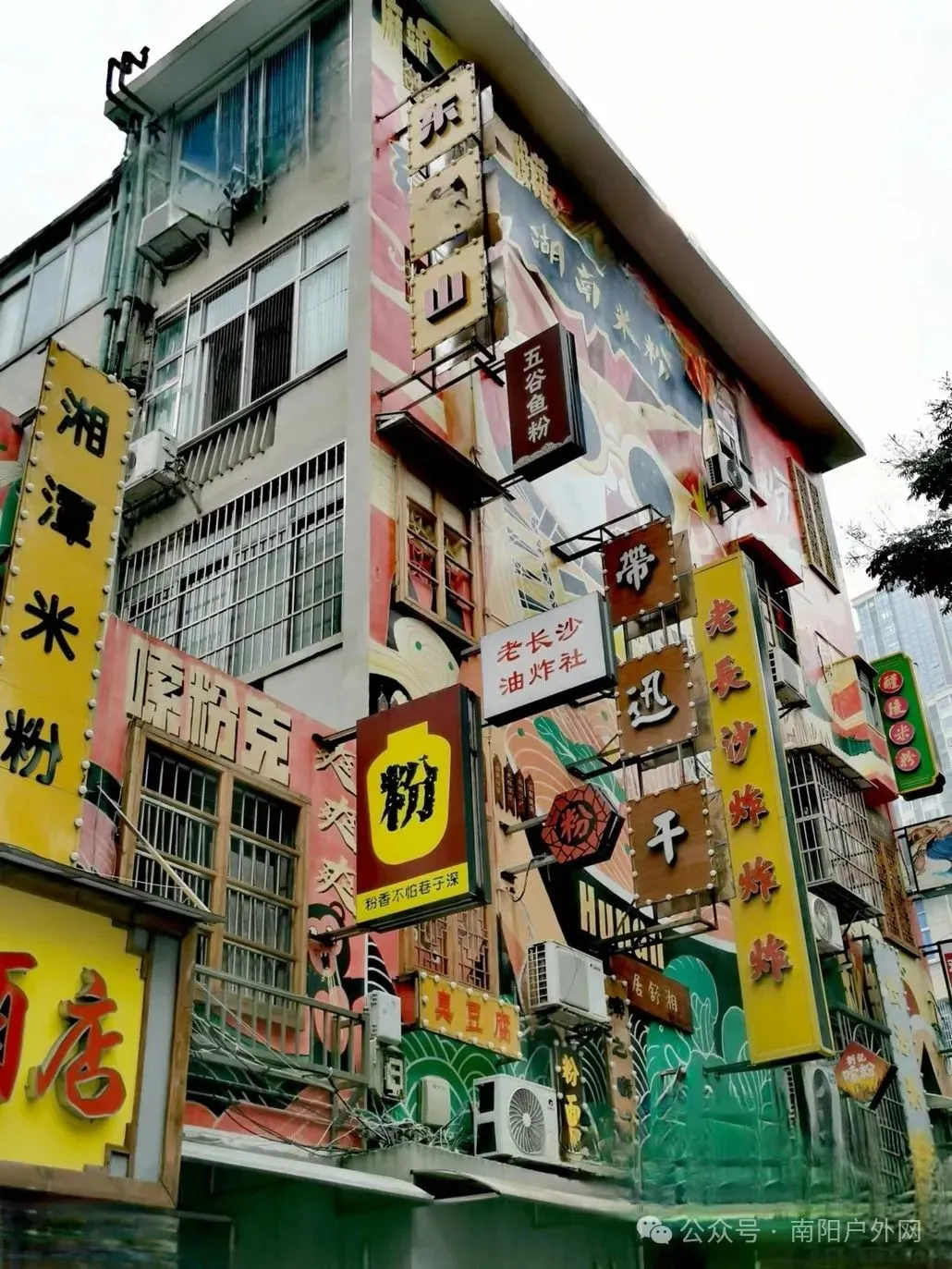 长沙人的早晨是从一碗热腾腾的米粉开始的,若是有一条街汇聚了湖南14市州的特色米粉。那可真是让人大饱口福啦!巨大的青花瓷碗和一束飞扬的米粉造型,让整条街更加生动鲜活,潮流画作和夸张的小龙虾元素。在具有年代感的老街区停留,潮流与复古在这里碰撞。