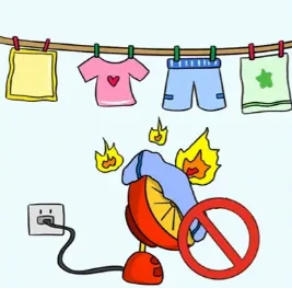 ②禁止在取暖设备上覆盖湿衣物。不仅容易引燃覆盖物,水汽进入电器内部还可能引发短路或触电。