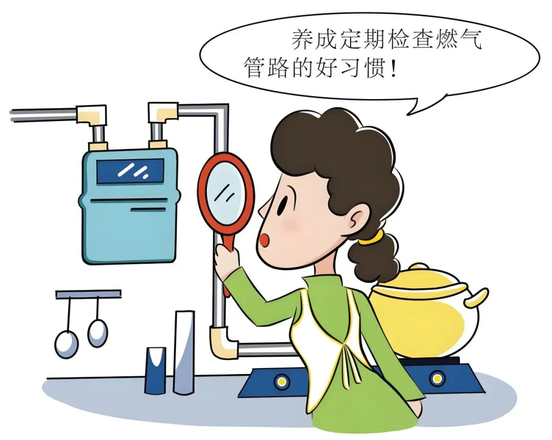 经常检查燃气连接管道是否老化,接口是否松动,如果是软管的话,建议定期更换更安全的金属波纹管。