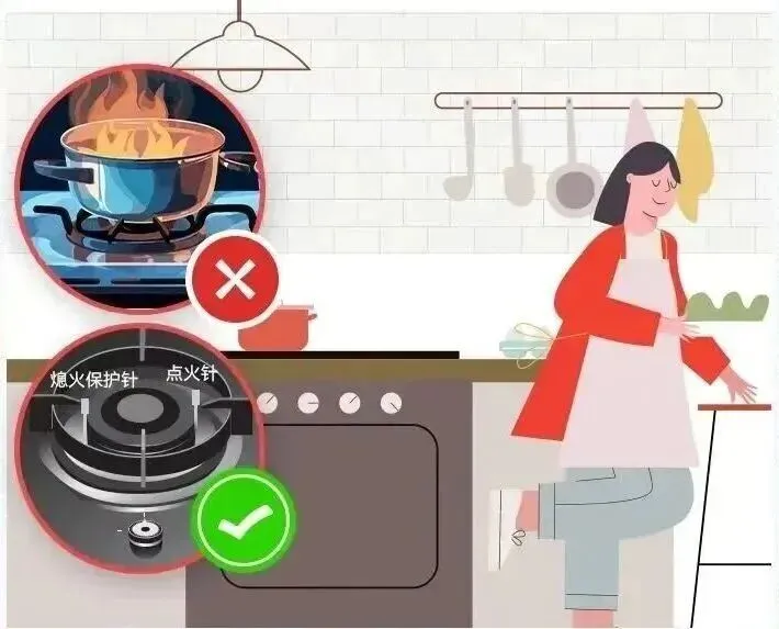使用燃气时,人不得长时间远离,防止火焰意外熄灭导致燃气泄漏。